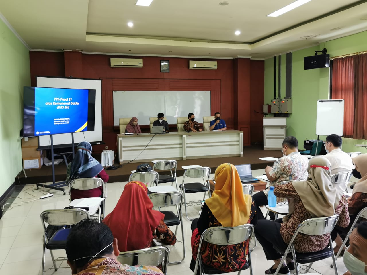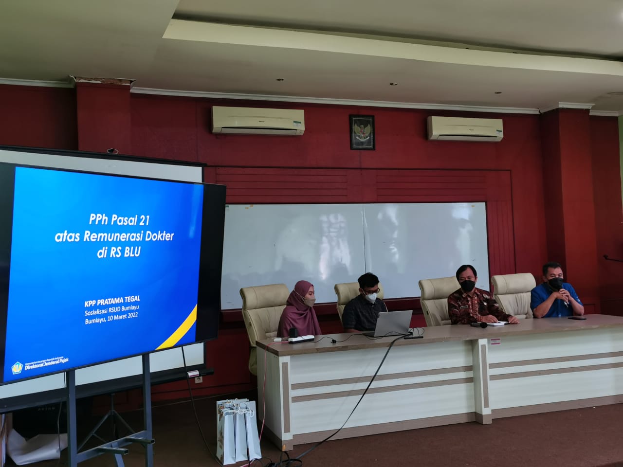 Kantor Pelayanan Pajak (KPP) Pratama Tegal menjadi narasumber Sosialisasi Pajak Penghasilan (PPh) Pasal 21 atas Remunerasi Dokter di Rumah Sakit (RS) Badan Layanan Umum (BLU) Bagi Dokter Non PNS di lingkungan Rumah Sakit Umum Daerah (RSUD) Bumiayu, Kamis (10/3). Direktur RSUD Bumiayu menyampaikan apresiasinya dalam sambutan yang sekaligus menjadi pembukaan kegiatan tersebut.