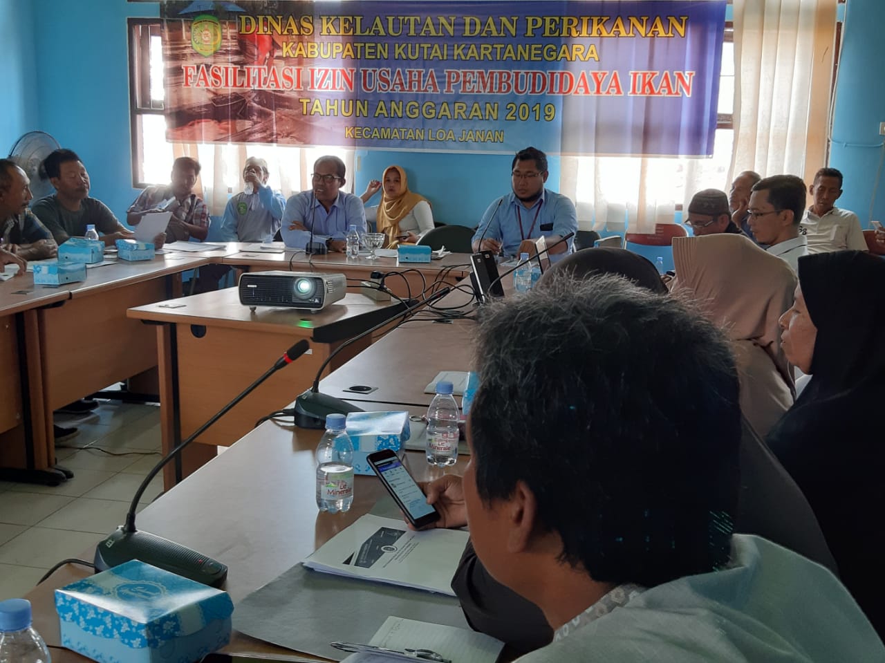 Dinas Kelautan dan Perikanan mengadakan Sosialisasi dan Fasilitasi Izin Usaha Penangkapan Ikan Tahun 2019 untuk masyarakat yang bekerja dalam bidang usaha penangkapan ikan di Kantor Kecamatan Loa Janan, Kutai Kartanegara (Rabu, 30/11).