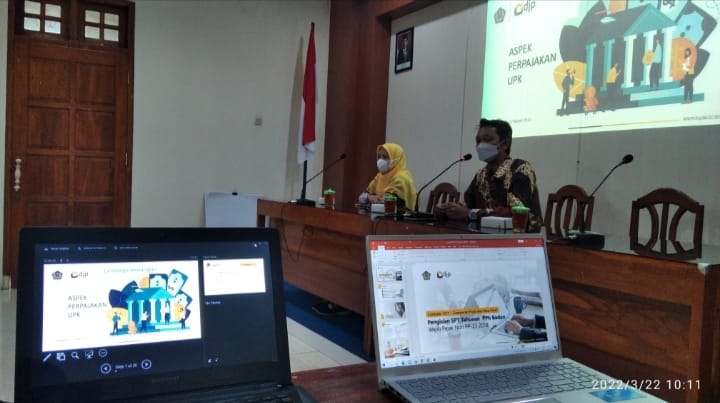Kantor Pelayanan Pajak (KPP) Pratama Wonosari dan Asosiasi UPK Gunung Kidul menggelar Audiensi dan Bimtek Pembuatan Laporan Keuangan Pajak serta Pelaporan SPT Tahunan Pajak Penghasilan (PPh) Badan Tahun 2021 di Gedung UPK Wonosari di Jalan Pemuda Gunungkidul (Selasa, 22/3).