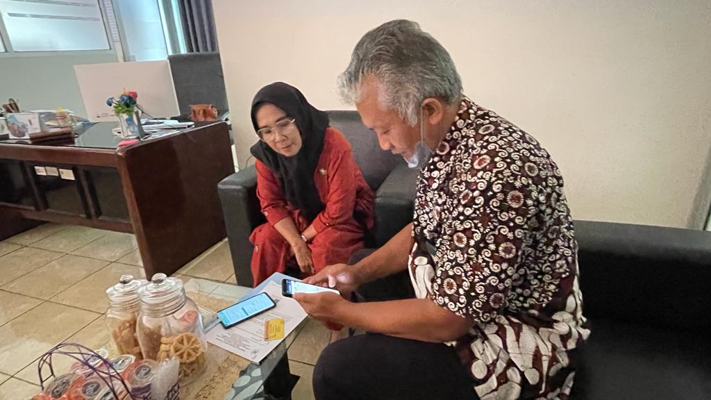 Pada kesempatan tersebut, Sahudi dengan dipandu oleh Tim Penyuluh KP2KP Banjar mencoba untuk melakukan pemutakhiran data mandiri dan validasi melalui gawainya.