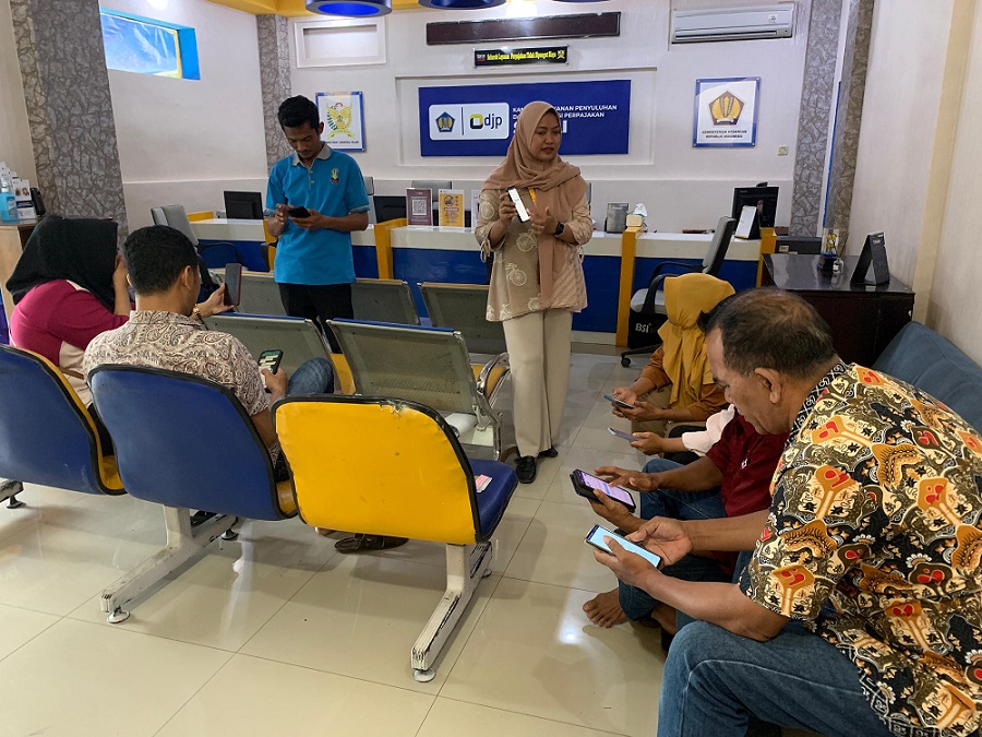 Waktu sudah menunjukkan pukul 15.50 WITA, jam pelayanan akan segera tutup tetapi antrian langsung ramai. Petugas Tempat Pelayanan Terpadu (TPT) KP2KP Sinjai berinisiatif untuk melakukan asistensi secara langsung kepada para wajib pajak yang berasal dari Kantor BKKBN tersebut untuk melaporkan SPT Tahunannya melalui e-Filing yang diakses di handphone masing-masing.