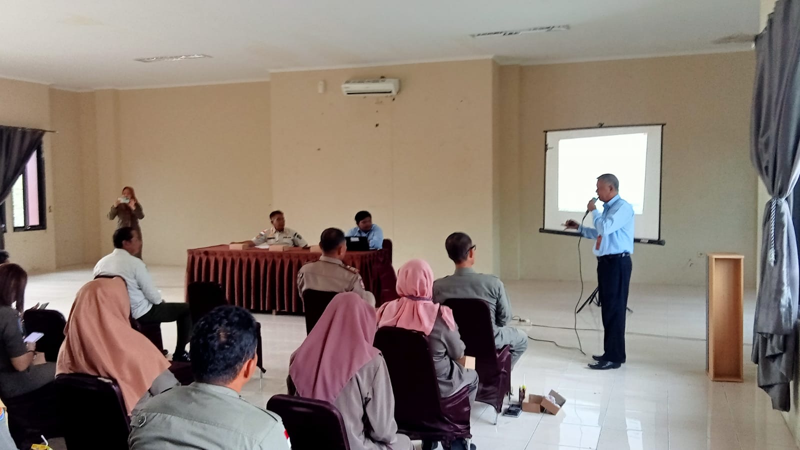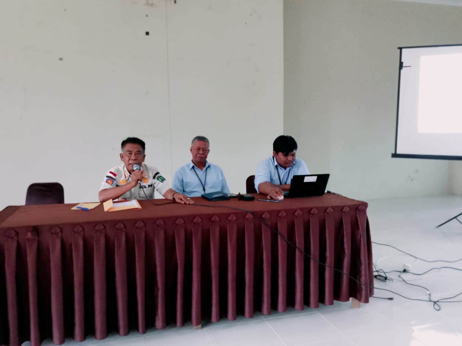 Tiga orang Pegawai Kantor Pelayanan, Penyuluhan, dan Konsultasi Perpajakan (KP2KP) Nunukan melakukan kunjungan ke Markas Komando (Mako) Satuan Polisi Pamong Praja (Satpol PP) Kabupaten Nunukan yang berlokasi di Kompleks Gedung Kantor Bupati Nunukan, Kelurahan Mansapa, Kecamatan Nunukan, Kabupaten Nunukan (Rabu, 8/2). Ketiga orang tersebut yaitu Kadri Silawane, Ajidin Nahumarury, dan Imam Syahroni.