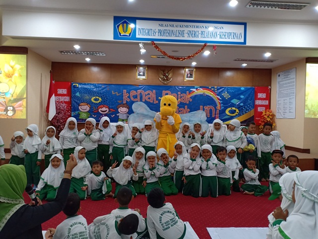 Kantor Pelayanan Pajak (KPP) Pratama Bojonegoro kenalkan pajak kepada 76 anak Pendidikan Anak Usia Dini (PAUD) Muslimat NU Nurul Ummah Kauman Bojonegoro (Kamis, 13/2). Kunjungan tersebut merupakan salah satu kegiatan dari PAUD Muslimat NU Nurul Ummah Kauman Bojonegoro untuk mengenalkan pajak sejak dini.
