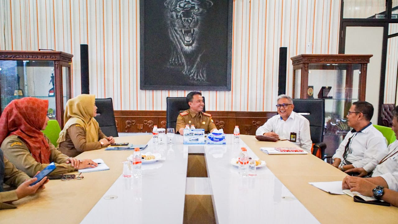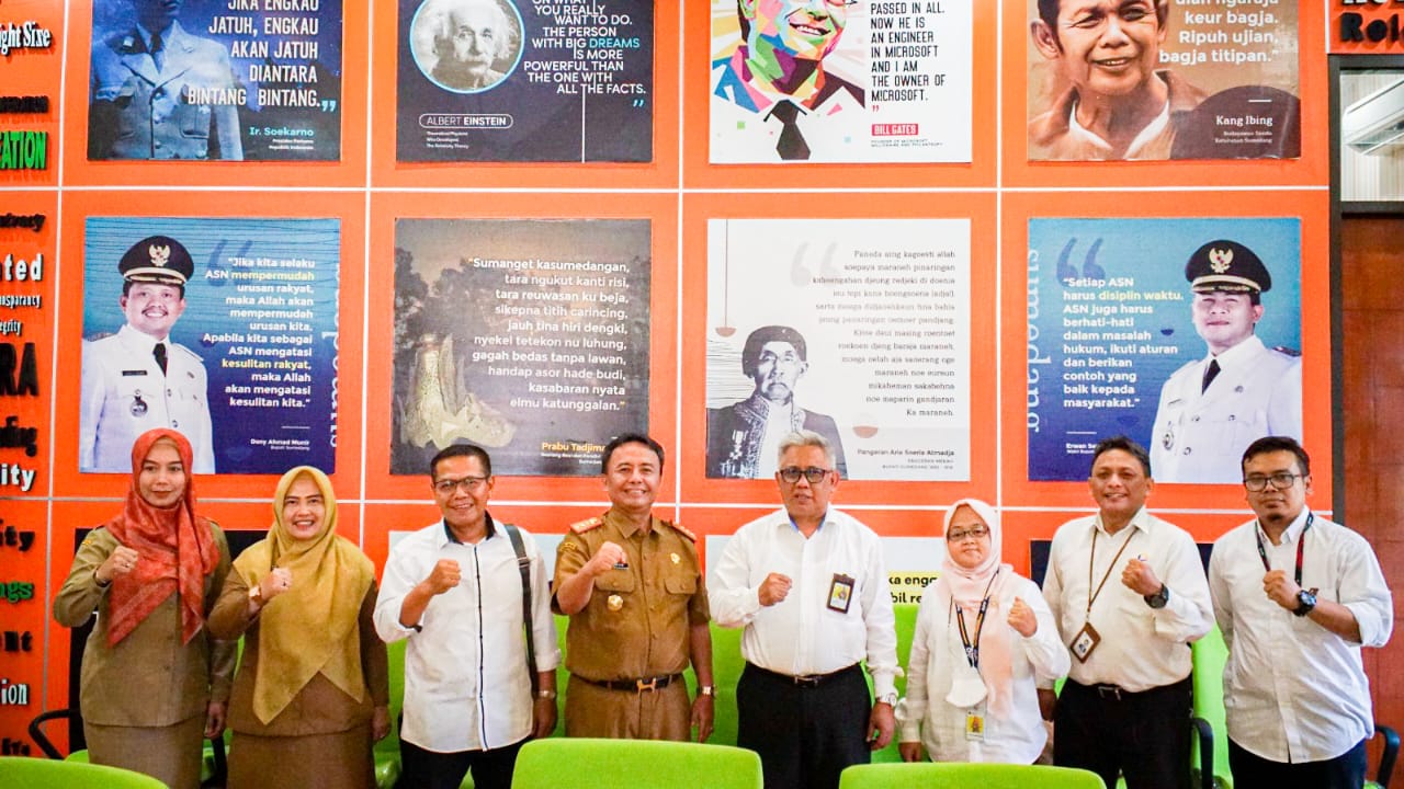 Tim Kantor Pelayanan Pajak (KPP) Pratama Sumedang mengunjungi Sekretariat Daerah (Setda) Sumedang untuk melakukan koordinasi terkait tindak lanjut Perjanjian Kerja Sama yang telah dilakukan antara Direktorat Jenderal Pajak (DJP), Pemerintah Daerah Kabupaten Sumedang, dan Direktorat Jenderal Perimbangan Keuangan (DJPK) di Ruang Rapat Kantor Setda Sumedang yang terletak di Jalan Prabu Gajah Agung No. 9, Situ, Sumedang Utara, Sumedang (Senin, 12/6).