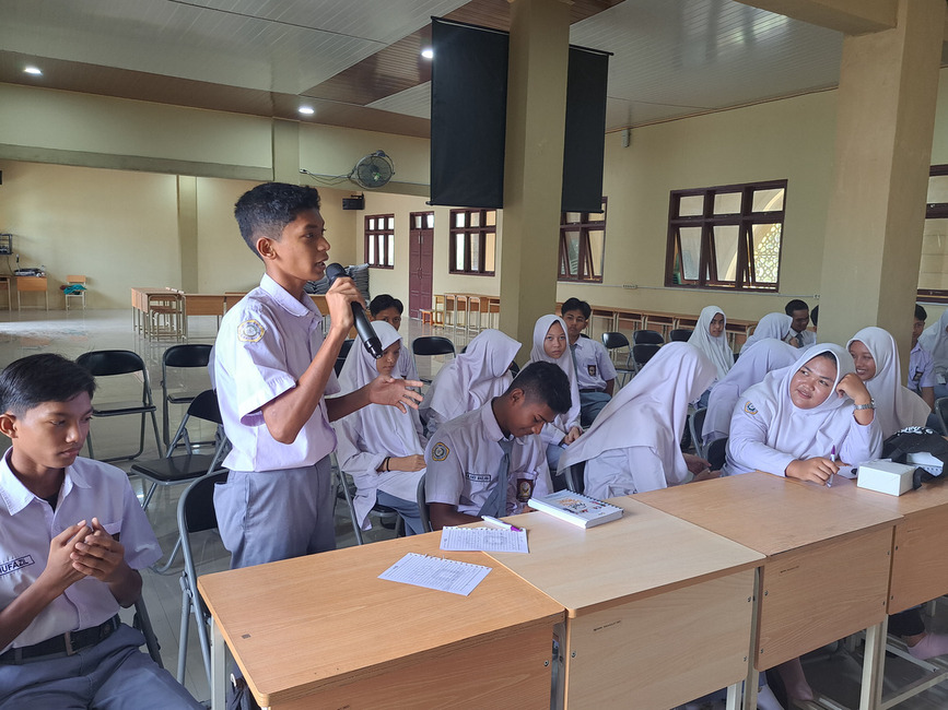 Para peserta mengikuti jalannya acara yang disertai dengan permainan untuk menguji pengetahuan siswa. KPP Pratama Lhokseumawe dan KP2KP Lhoksukon senantiasa berupaya meningkatkan pengetahuan para calon wajib pajak agar dapat memenuhi kewajibannya di masa depan.