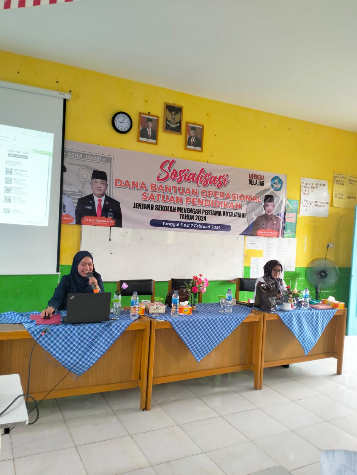 Kegiatan Sosialisasi dana BOS ini diselenggarakan oleh Dinas Pendidikan Kota Jambi. Acara ini diikuti oleh Kepala Sekolah, Pengelola Keuangan dan Operator BOS SMP negeri dan swasta di wilayah Kota Jambi.