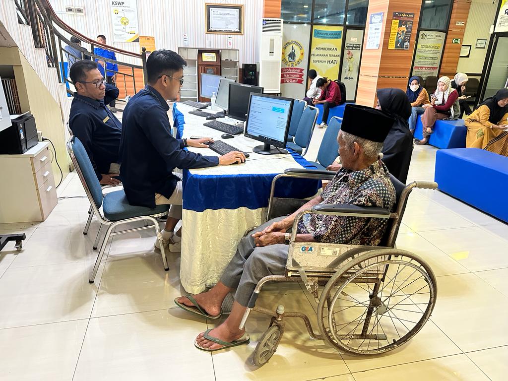 Kantor Pelayanan Pajak (KPP) Pratama Bulukumba memberikan pelayanan kepada Wajib Pajak Disabilitas di Ruang Tempat Pelayanan Terpadu (TPT) KPP Pratama Bulukumba, Jalan Sultan Hasanuddin, Bintarore, Kecamatan Ujung Bulu, Kabupaten Bulukumba, Sulawesi Selatan (Rabu, 3/1). Andi Alamsyah, petugas pada loket TPT menyapa Nawir dengan ramah.