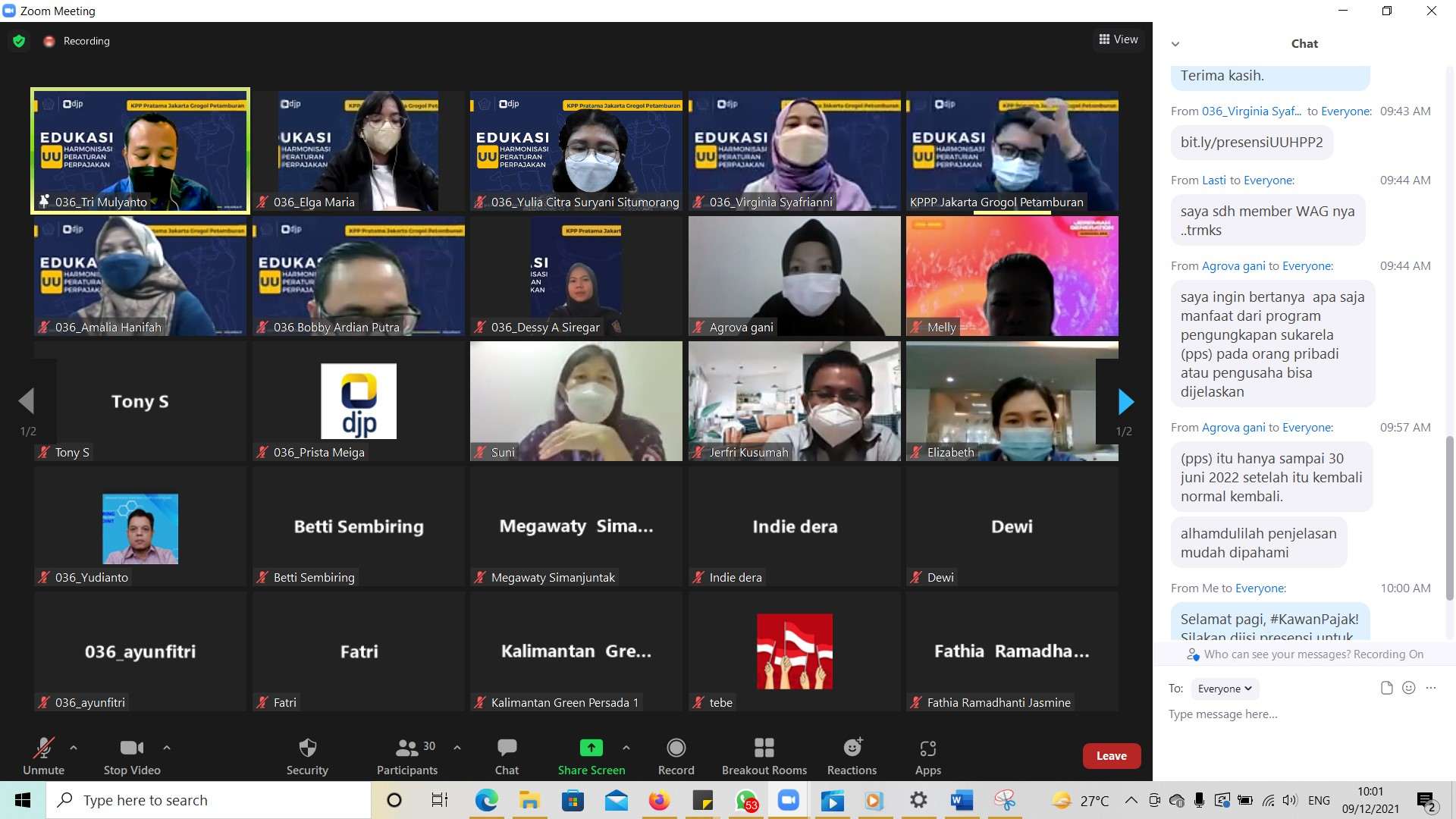 KPP Pratama Jakarta Grogol Petamburan kembali menyosialisasikan Undang-Undang Nomor 7 Tahun 2021 tentang Harmonisasi Peraturan Perpajakan (UU HPP) secara daring melalui media Zoom Meeting di Jakarta (Kamis, 9/12).