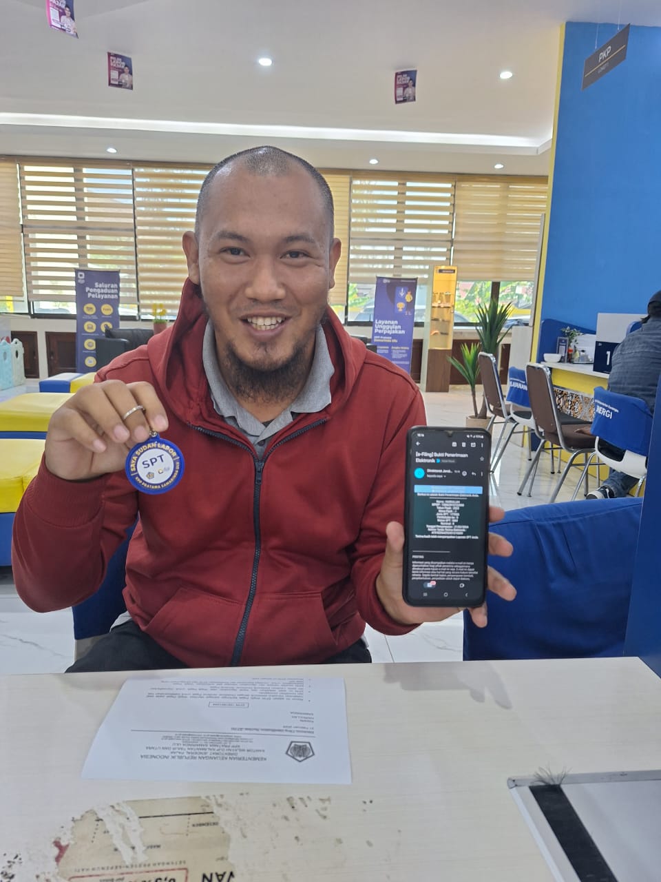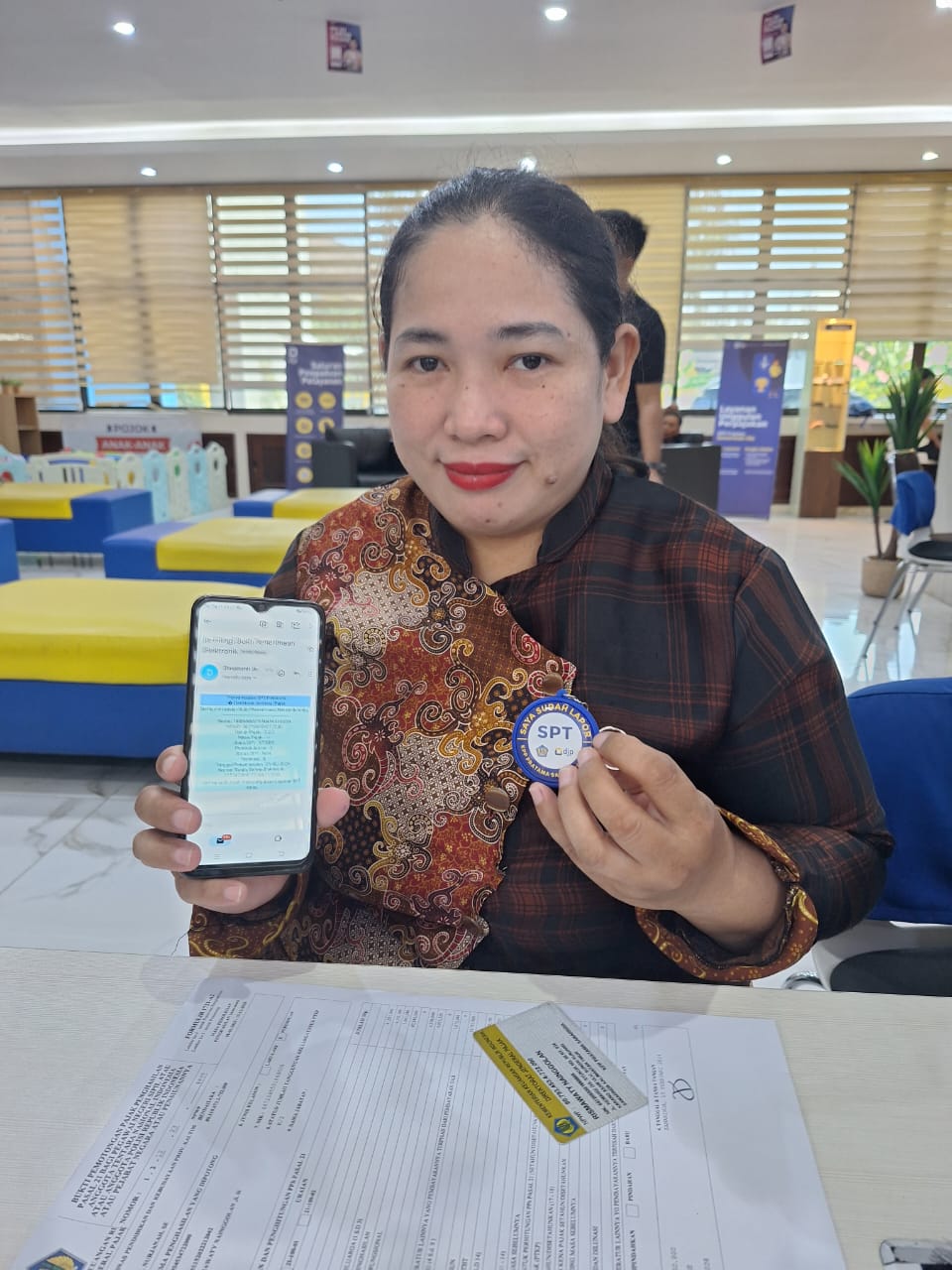 "Melihat antusias kehadiran Wajib Pajak yang melaporkan SPT Tahunan 2023 dan sebagai wujud terimakasih telah patuh menyampaikan SPT, KPP memberikan apresiasi secara langsung kepada Wajib Pajak yang telah menerima layanan asistensi dan melaporkan SPTnya dengan suvenir kecil yang bertuliskan 'Saya sudah lapor SPT'," ucap Hutomo Budi, Kepala KPP Pratama Samarinda Ulu.