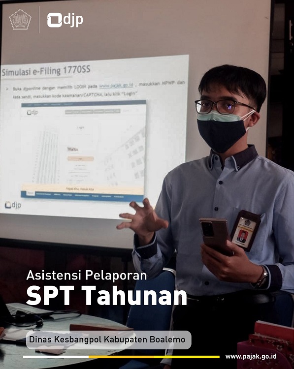 Kantor Pelayanan Penyuluhan dan Konsultasi Perpajakan (KP2KP) Tilamuta menggelar kegiatan Asistensi pelaporan SPT Tahunan secara daring melalui e-Filing di Kantor Kesatuan Bangsa dan Politik (Kesbangpol) Kabupaten Boalemo, Gorontalo (Rabu, 24/2).