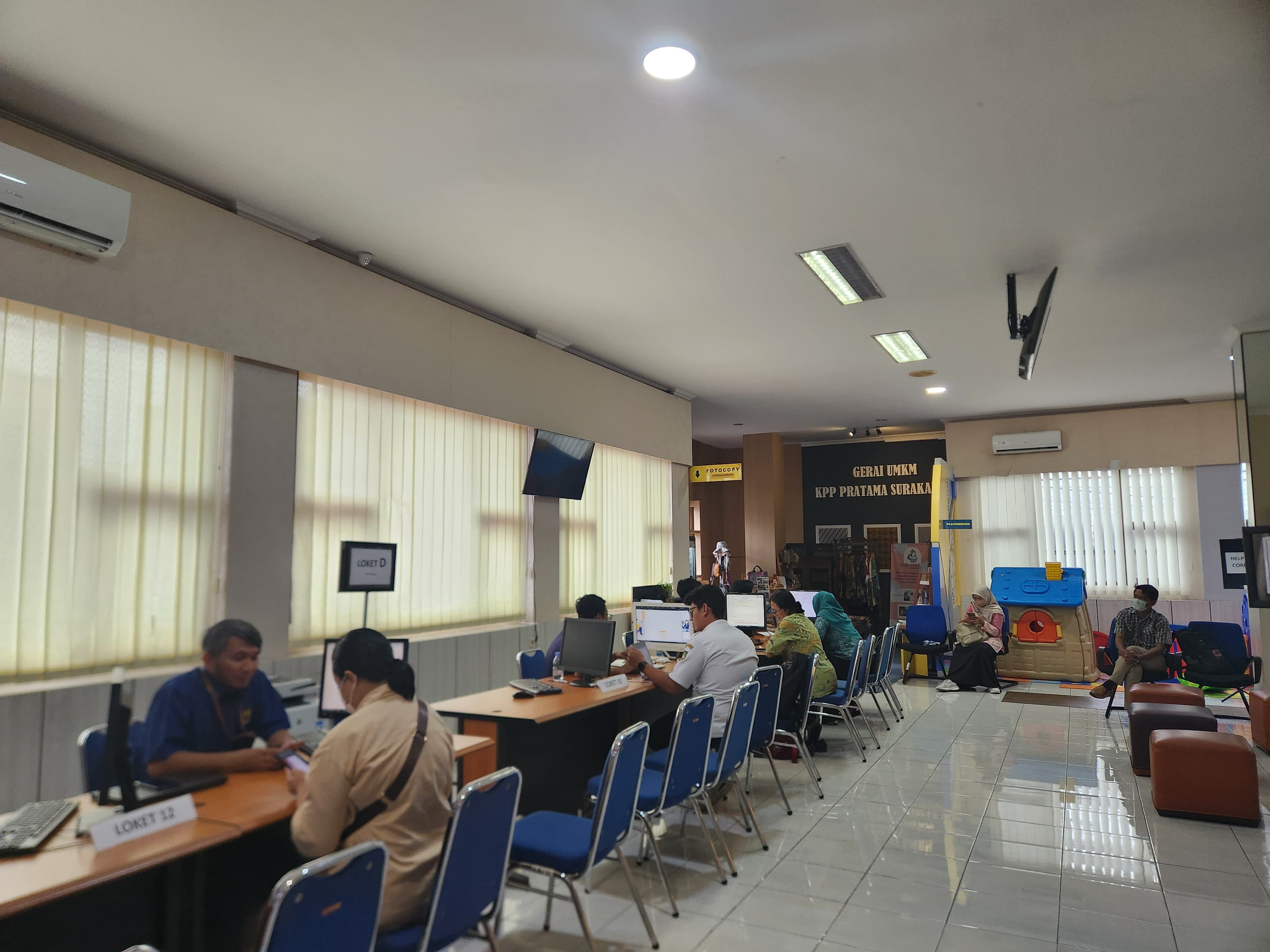 Pada hari terakhir batas waktu pelaporan Surat Pemberitahuan (SPT) Tahunan Pajak Penghasilan (PPh) Badan, Kantor Pelayanan Pajak (KPP) Pratama Surakarta dipenuhi oleh Wajib Pajak Badan di Kota Surakarta (Rabu, 30/4). Sejak sebelum antrean dibuka, sejumlah wajib pajak sudah memadati kantor pajak dengan harapan dapat mengurangi waktu antre jika datang pada siang hari yang biasanya lebih ramai.