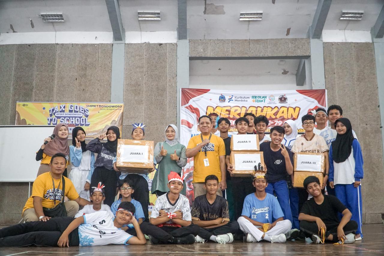 Kantor Pelayanan, Penyuluhan, dan Konsultasi Perpajakan Bondowoso mengadakan kegiatan Tax Goes to School (TGTS) di Gedung Olah Raga (GOR) Pelita Bondowoso, Jalan Letjen Sutarman, Kecamatan Bondowoso, Kabupaten Bondowoso, Jawa Timur (Senin, 27/8). Kegiatan ini melibatkan seluruh siswa Sekolah Menengah Pertama Negeri (SMPN) 1 Bondowoso yang berjumlah 650 siswa dari jenjang kelas 7 hingga kelas 9.