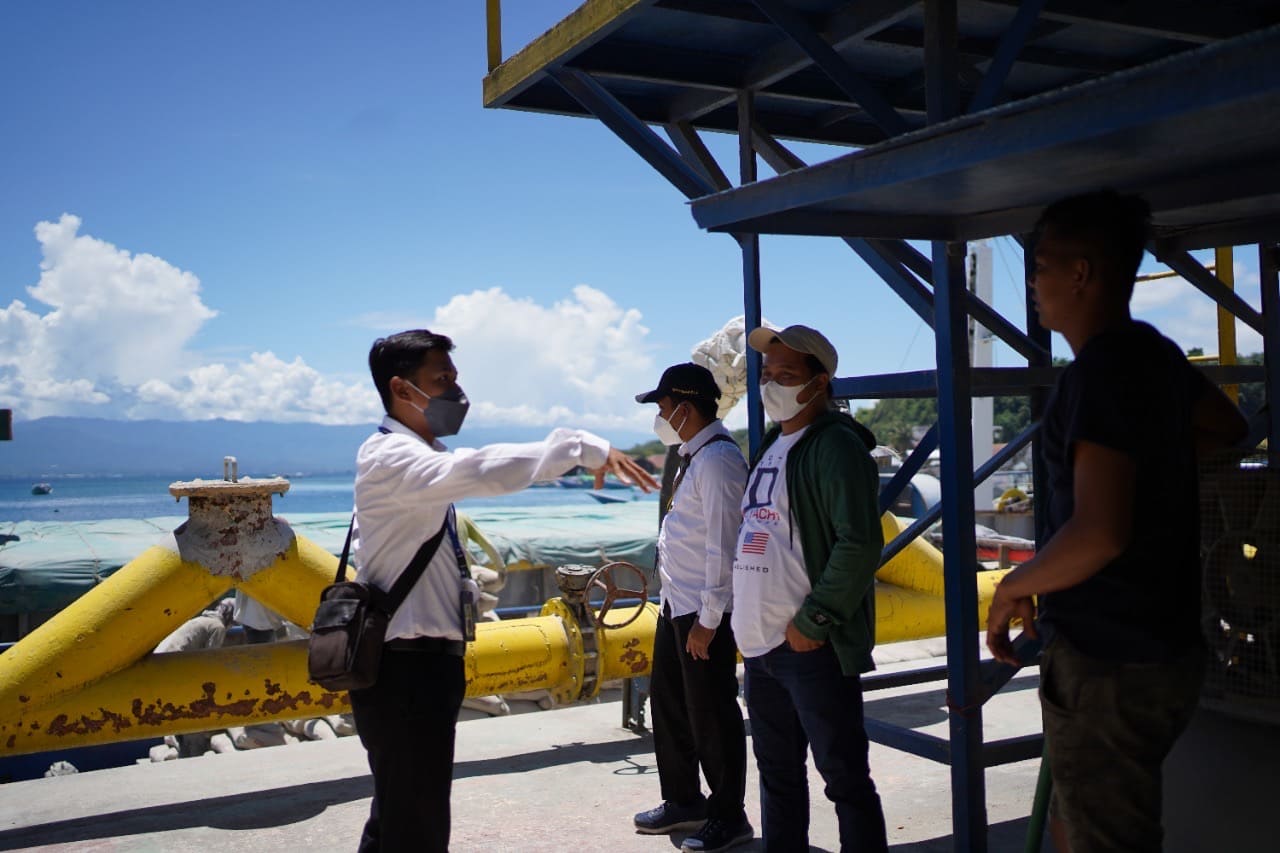 Setelah penjelasan dipaparkan, Tim Penagihan KPP Pratama Palu menemani calon peserta lelang untuk melakukan observasi terhadap Kapal Tongkang Bosowa yang berada di Pelabuhan Donggala.