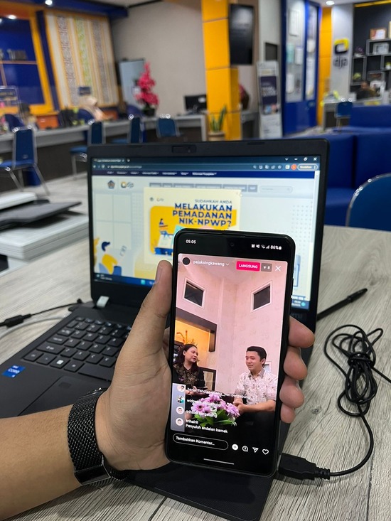 Petugas Penyuluh Pajak Kantor Pelayanan Pajak (KPP) Pratama Singkawang mengadakan siaran langsung (live) melalui platform media sosial Instagram @pajaksingkawang di Ruang Konsultasi KPP Pratama Singkawang (Jumat, 3/3).
