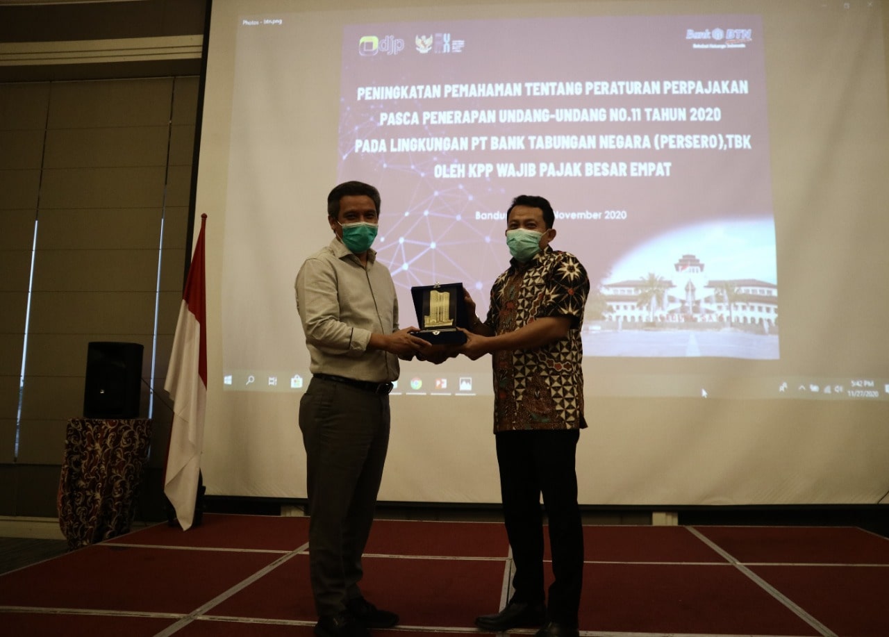Kantor Pelayanan Pajak (KPP) Wajib Pajak (WP) Besar Empat menyelenggarakan acara sosialisasi Undang-Undang Nomor 11 Tahun 2020 tentang Cipta Kerja, khususnya mengenai Klaster Kemudahan Berusaha Dibidang Perpajakan kepada PT Bank Tabungan Negara (Persero), Tbk. Sosialisasi diadakan di Hotel Four Points by Sheraton Bandung (Jumat, 27/11).