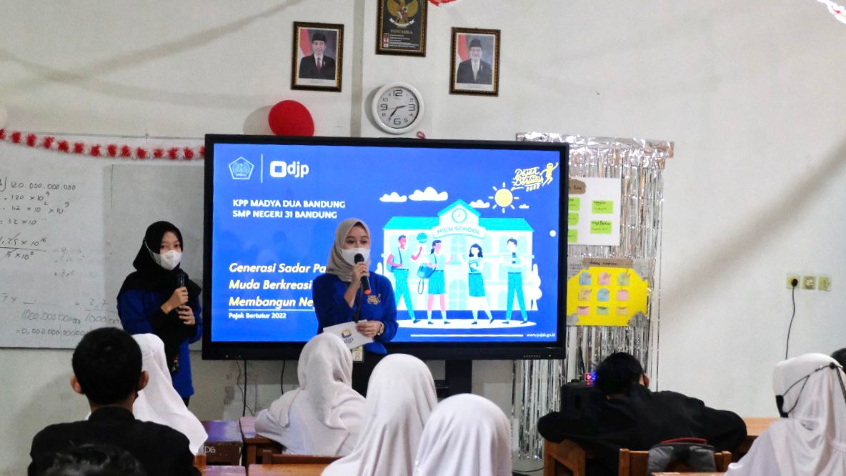 Sebanyak 33 siswa SMP Sekolah Menengah Pertama (SMP) Negeri 31 Bandung mengikuti kegiatan Pajak Bertutur yang diadakan oleh kantor Pelayanan Pajak (KPP) Madya Dua Bandung di Jalan Binong Jati No. 139, Binong, Batununggal, Kota Bandung, (Kamis, 18/08).