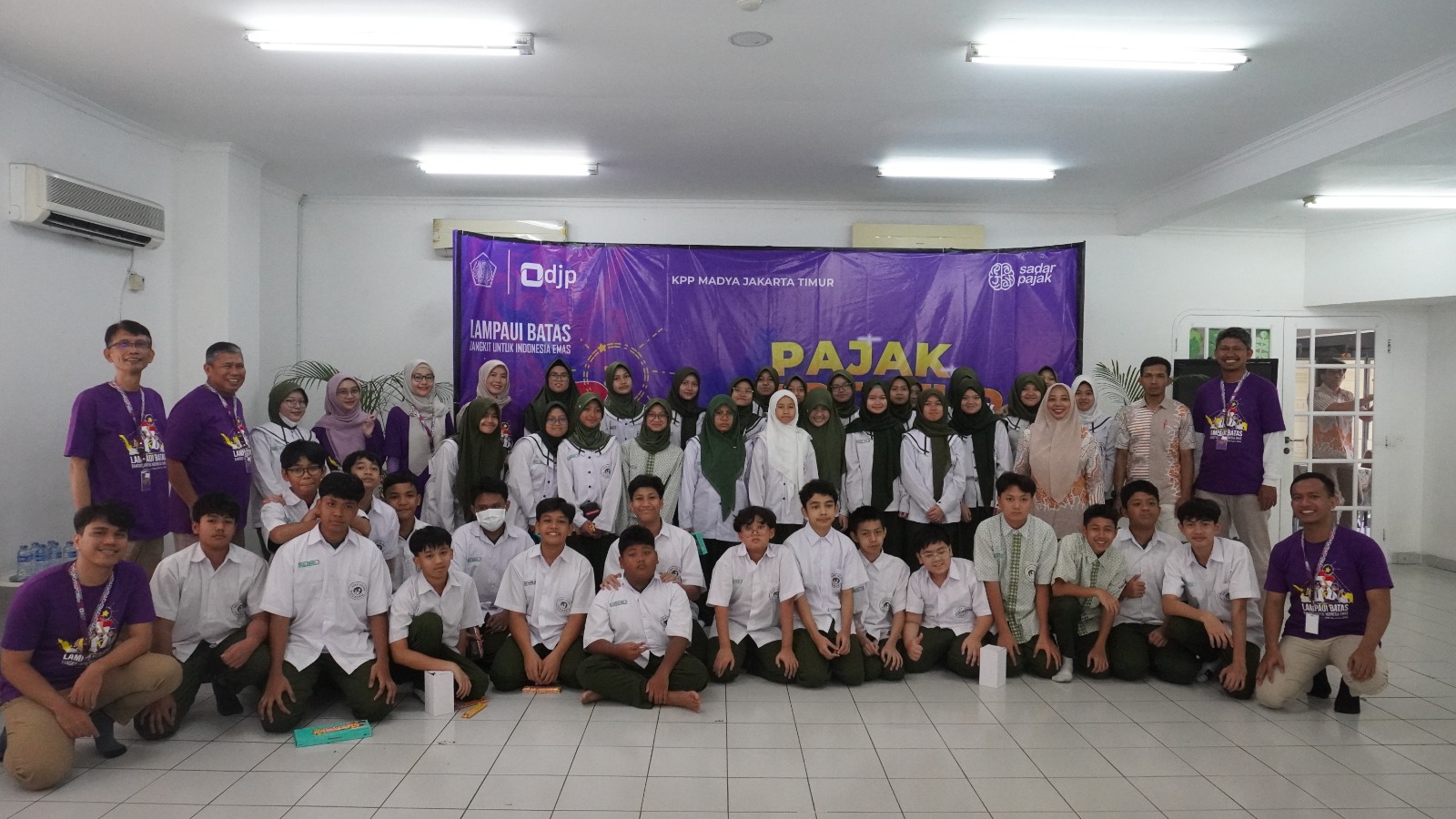 Kantor Pelayanan Pajak (KPP) Madya Jakarta Timur turut memeriahkan Kegiatan Pajak Bertutur Tahun 2024 yang diselenggarakan secara serentak di sekolah-sekolah seluruh Indonesia (Rabu, 7/8). Kegiatan dilaksanakan di Aula Sekolah Menengah Pertama (SMP) Islam Tugasku, yang berlokasi di Pulogadung, Jakarta Timur. Puluhan siswa kelas 8 SMP Islam Tugasku antusias mengikuti kegiatan tersebut.
