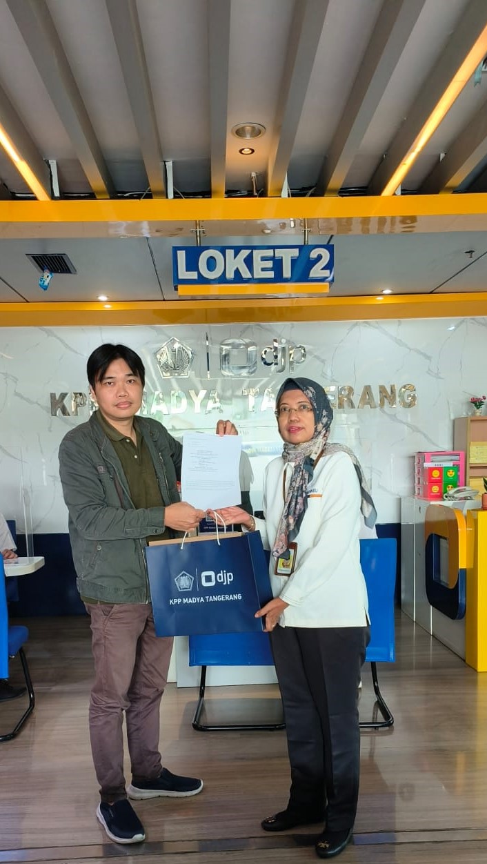 Suvenir sebagai tanda apresiasi diberikan langsung oleh Kepala Seksi Pelayanan Sri Wilissetyowati kepada Davi, salah satu staf PT. Bright Mobile Telecommunication. Apresiasi ini merupakan wujud terima kasih KPP Madya Tangerang kepada PT. Bright Mobile Telecommunication karena telah melakukan Pelaporan Surat Pemberitahuan (SPT) Tahunan Badan lebih awal melalui pajak.go.id.