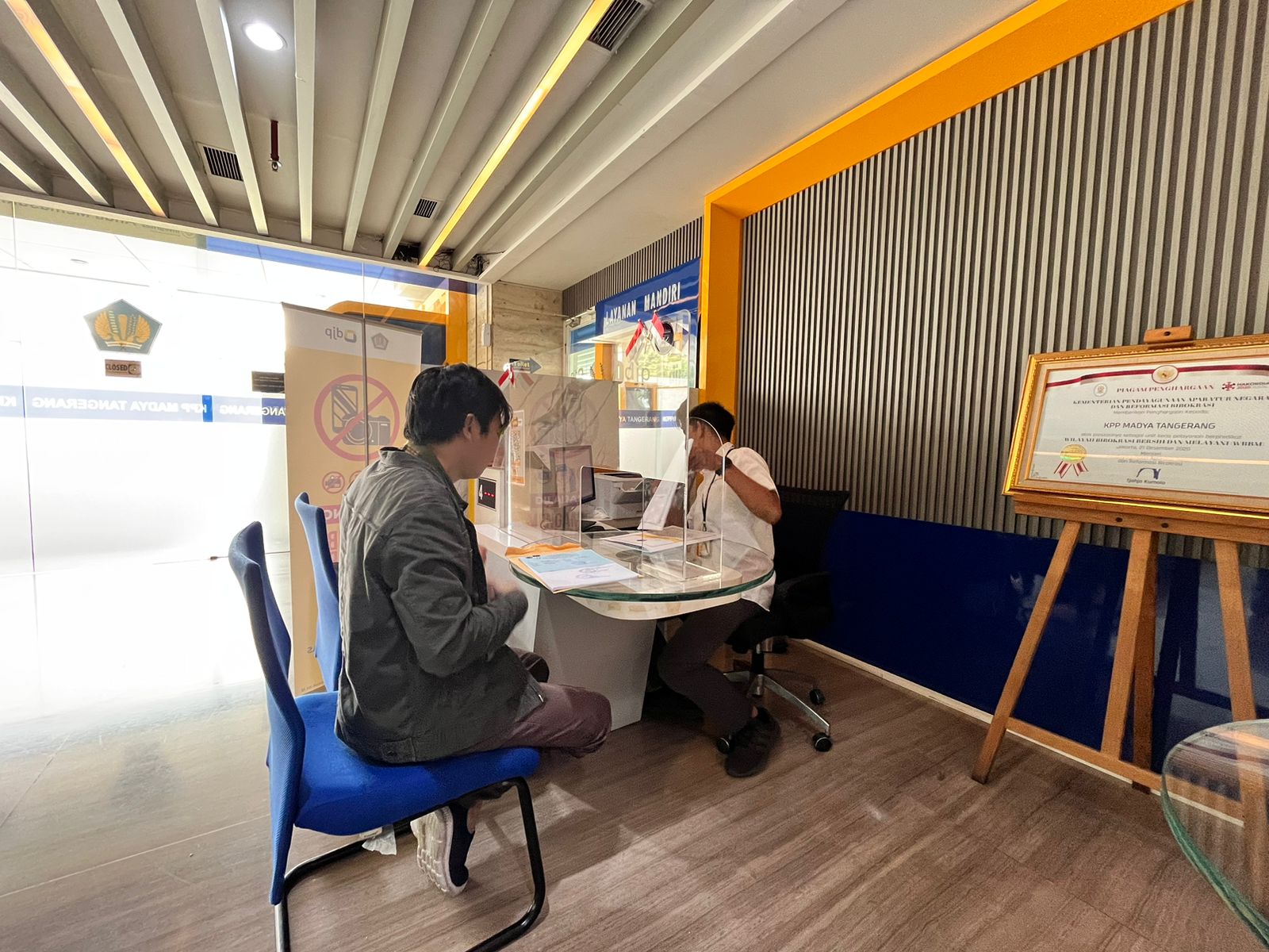 Kantor Pelayanan Pajak (KPP) Madya Tangerang memberikan apresiasi kepada PT. Bright Mobile Telecommunication di ruang Tempat Pelayanan Terpadu (TPT) KPP Madya Tangerang, Jalan Jalur Sutera Barat No.3, Panunggangan Timur, Pinang, Kota Tangerang, Banten (Senin, 22/1).