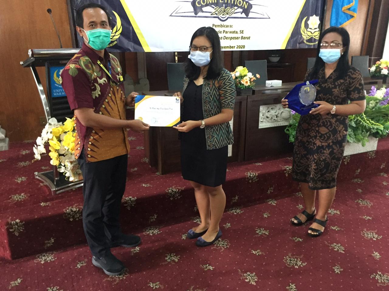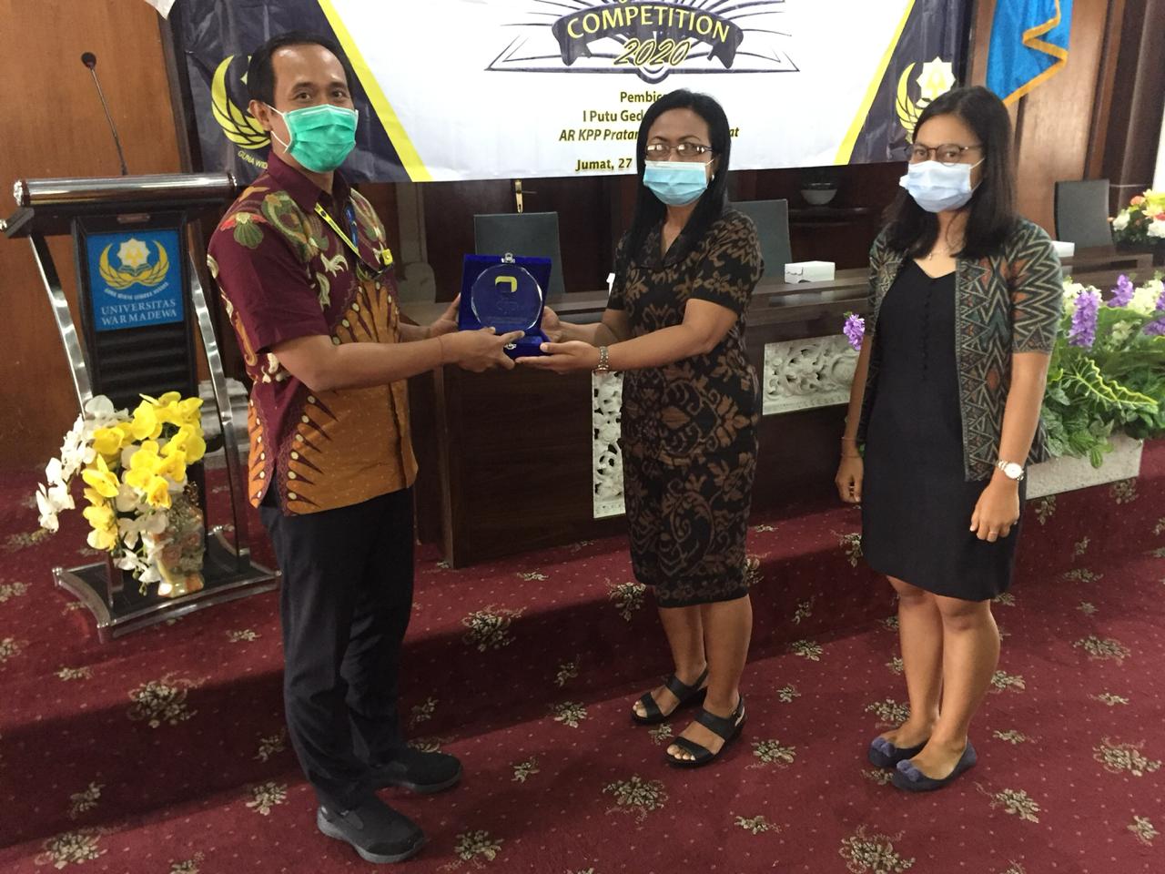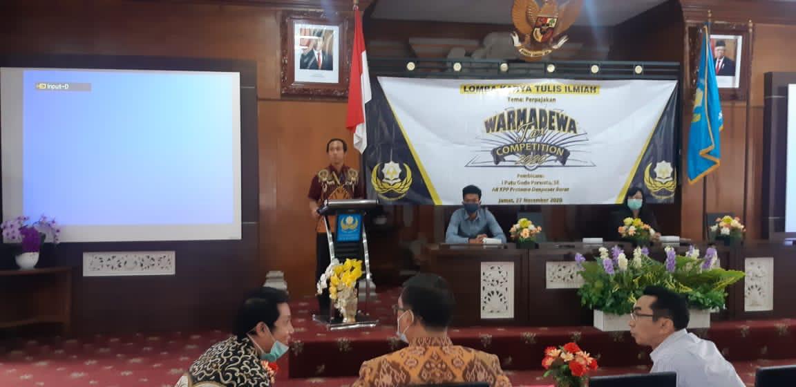 I Putu Gede Parwata, Account Representative (AR) KPP Pratama Denpasar Barat menghadiri kegiatan Warmadewa Tax Challenge 2020 dan Seminar Regional yang diadakan oleh Fakultas Ekonomi dan Bisnis (FEB) Universitas Warmadewa di Bali (Jumat, 27/11).