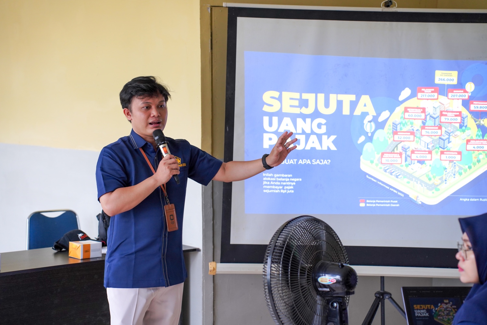 Selanjutnya, Awanna Fikri Siregar, Fungsional Penyuluh KPP Pratama Kisaran selaku pemateri kegiatan, menyampaikan materi dengan tema Generasi Muda Sadar Pajak Bukti Peduli Pada Negeri”. “Pajak memiliki manfaat dalam pembangunan negara yang dapat teman-teman rasakan misalnya dalam layanan kesehatan, pendidikan, dan fasilitas umum” jelas Awanna.