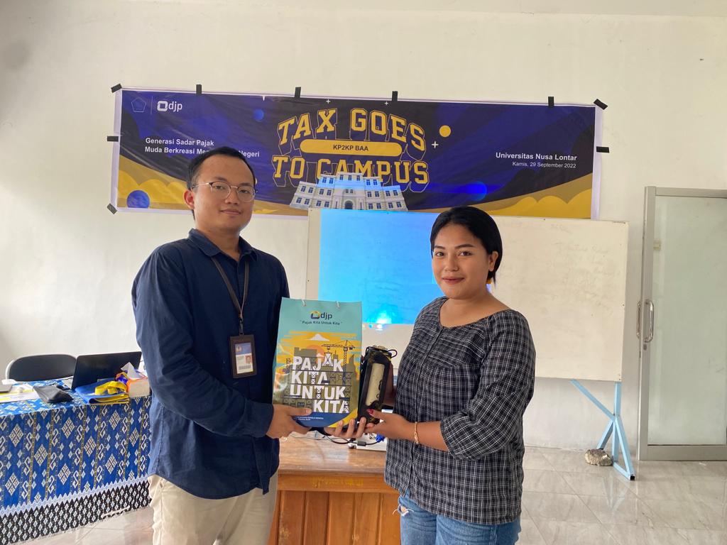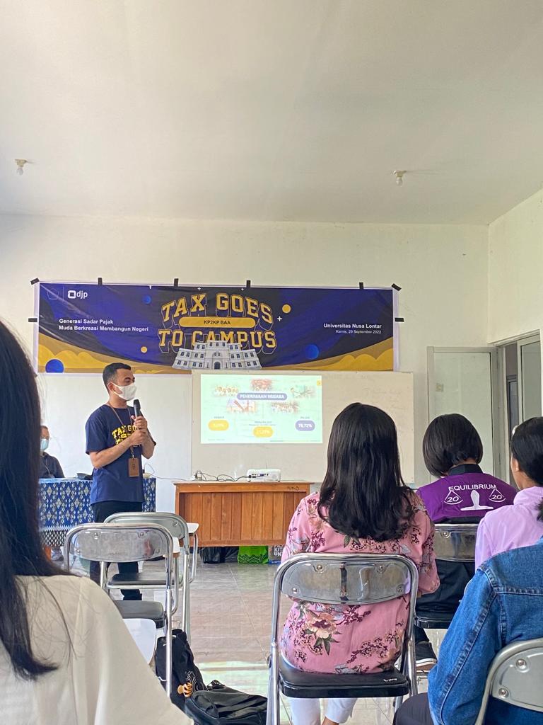 KP2KP Baa menyelenggarakan Tax Goes to Campus dengan tema "Generasi Sadar Pajak Muda Berkreasi Membangun Negeri" bersama 30 mahasiswa Program Studi Manajemen Universitas Nusa Lontar (Kamis, 29/9).