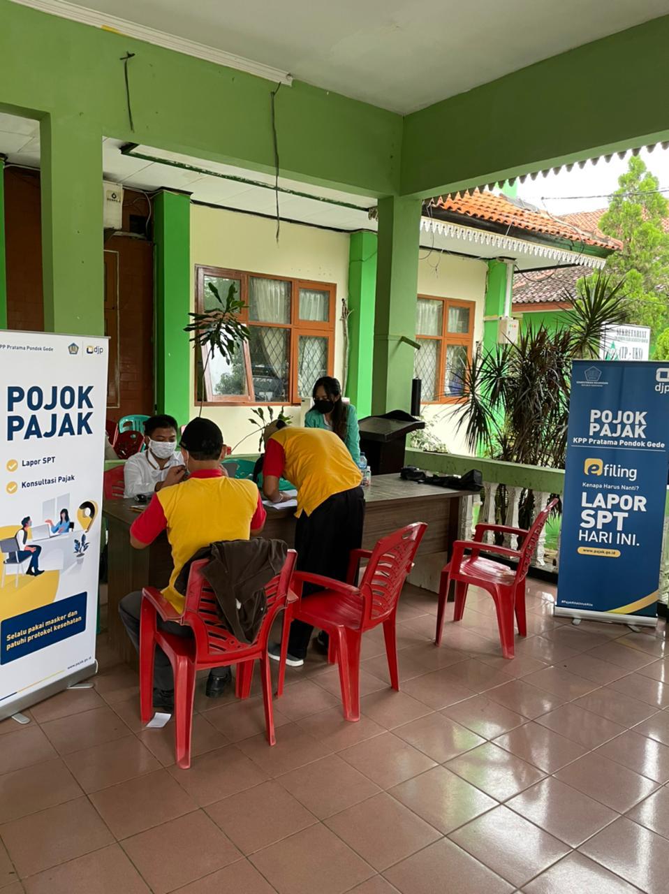 Kantor Pelayanan Pajak (KPP) Pratama Pondok Gede membuka pojok pajak di Kantor Kecamatan Jati Asih, Bekasi (Kamis, 25/3).