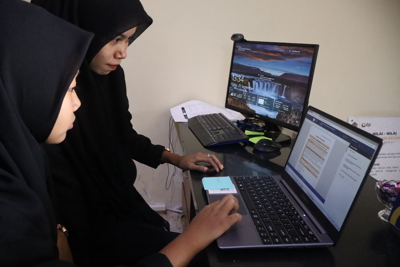 Siswi SMK yang mengikuti kegiatan ini tampak antusias dalam memanfaatkan KLC. “Belajar menggunakan KLC ini sangat menarik! Saya mencoba mempelajari aspek perpajakan UMKM karena mayoritas warga di desa saya bekerja sebagai pelaku UMKM,” tutur Saleha, salah satu siswi SMK.