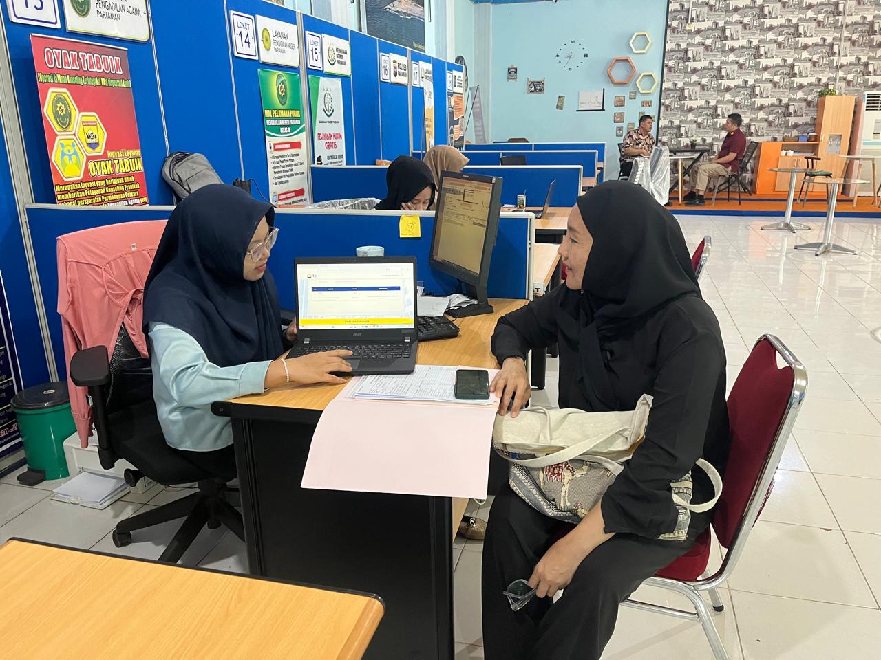 Kantor Pelayanan, Penyuluhan, dan Konsultasi Perpajakan (KP2KP) Pariaman menerima kunjungan Wajib Pajak Badan yang datang untuk melakukan konsultasi terkait status Konfirmasi Status Wajib Pajak (KSWP) yang tidak valid di Mal Pelayanan Publik (MPP) Kota Pariaman (Selasa, 5/11).