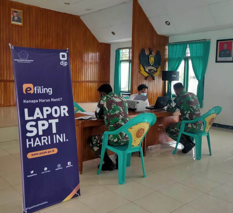 Kantor Pelayanan Penyuluhan dan Konsultasi Perpajakan (KP2KP) Liwa menggelar kegiatan Pojok Pajak di Markas Komando Distrik Militer (Kodim) 0422 Lampung Barat (Senin, 8/3). Kegiatan Pojok Pajak ini dilaksanakan untuk memberikan asistensi pelaporan Surat Pemberitahuan (SPT) Tahunan melalui e-Filing kepada prajurit TNI di lingkungan Kodim 0422 Lampung Barat.