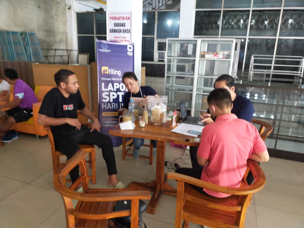 Kantor Pelayanan Pajak (KPP) Pratama Gorontalo kembali mengadakan Pojok Pajak di Warung Kopi Amal Gorontalo (Minggu, 28/2). Kegiatan ini berlangsung pada akhir pekan sejak Sabtu, 27 Februari 2021.