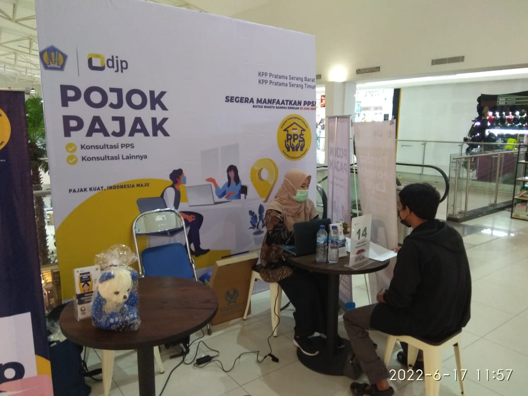 Layanan pojok pajak ini telah dibuka sejak tanggal 6 Juni dan akan berakhir di tanggal 30 Juni 2022. Para pegawai KPP Pratama Serang Barat bertugas secara bergantian di pojok pajak tersebut. Kehadiran pojok pajak PPS di Mall of Serang merupakan upaya jemput bola untuk memberikan layanan kepada wajib pajak terkait PPS.