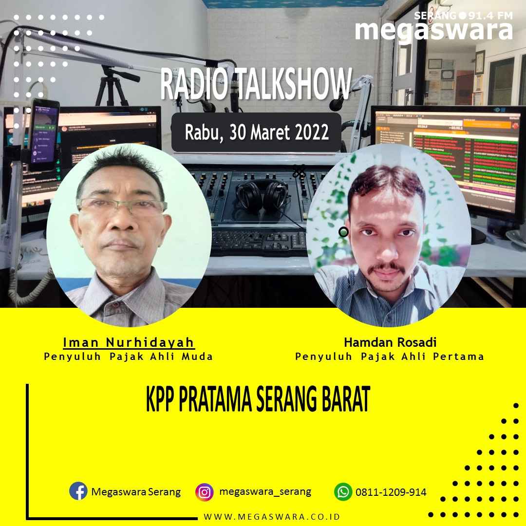 Kantor Pelayanan Pajak (KPP) Pratama Serang Barat melakukan gelar wicara di Radio Megaswara 94.1 FM Kota Serang untuk mengingatkan masyarakat dalam pelaporan SPT Tahunan (Rabu, 30/03).