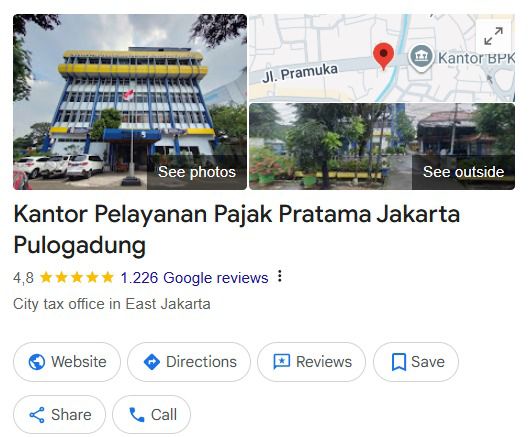Kantor Pelayanan Pajak (KPP) Pratama Jakarta Pulogadung terus menunjukkan komitmennya dalam memberikan pelayanan terbaik kepada wajib pajak. Kualitas layanan KPP Pratama Jakarta Pulogadung tercermin dari ulasan masyarakat di Google Review. Hingga saat ini, KPP Pratama Jakarta Pulogadung mendapatkan penilaian 4,8 dari 5 bintang dengan total 1.266 ulasan.