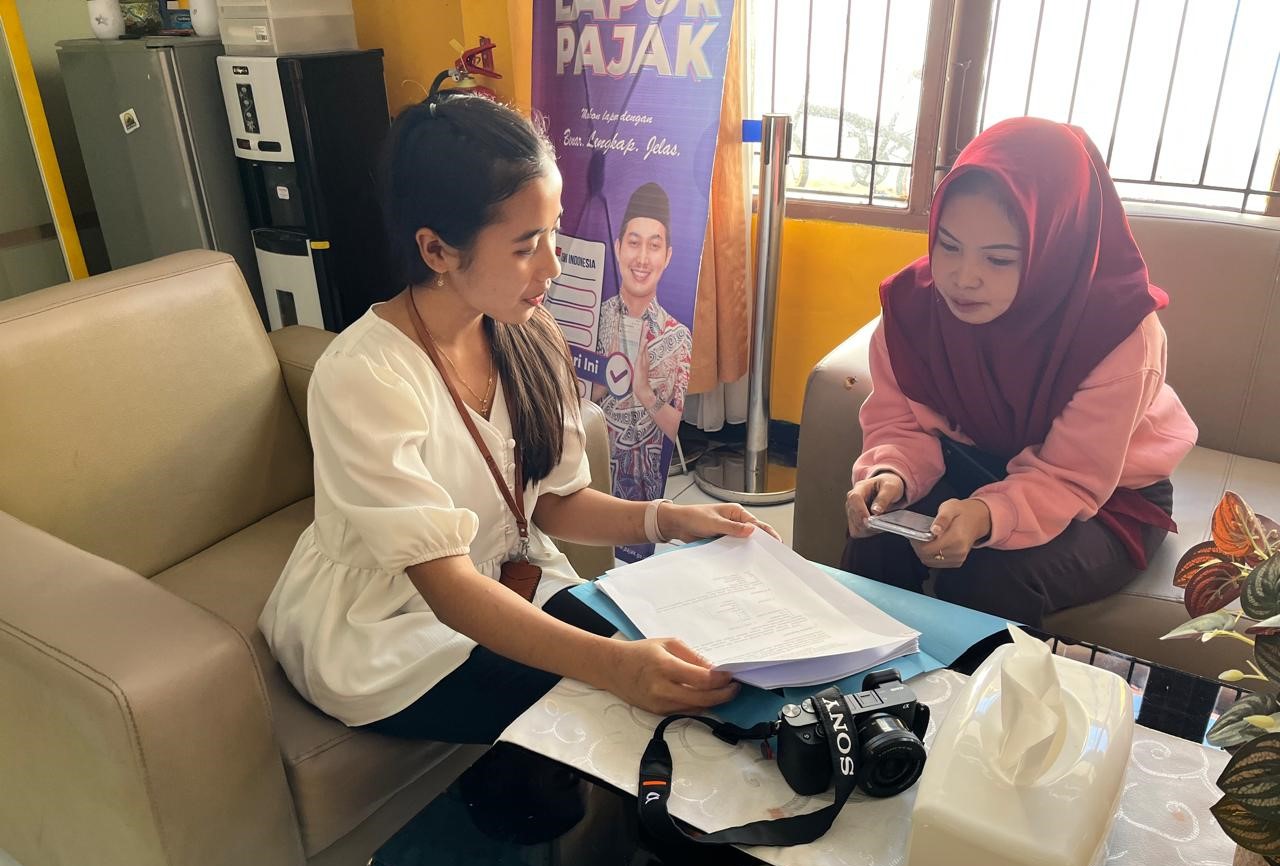 Setibanya di KP2KP Sidrap, Eka Sariska, seorang mahasiswi jurusan Akuntansi Universitas Ichsan, disambut baik oleh Pelaksana KP2KP Sidrap Elsa Evelina. Dalam pertemuan tersebut, Eka Sariska menyampaikan tujuan kedatangannya. “Saya ada rencana melakukan penelitian terkait kepatuhan wajib pajak di KP2KP Sidrap sebagai bahan penyusunan skripsi, Kak. Kira-kira syarat dan tata caranya bagaimana?” tanyanya.