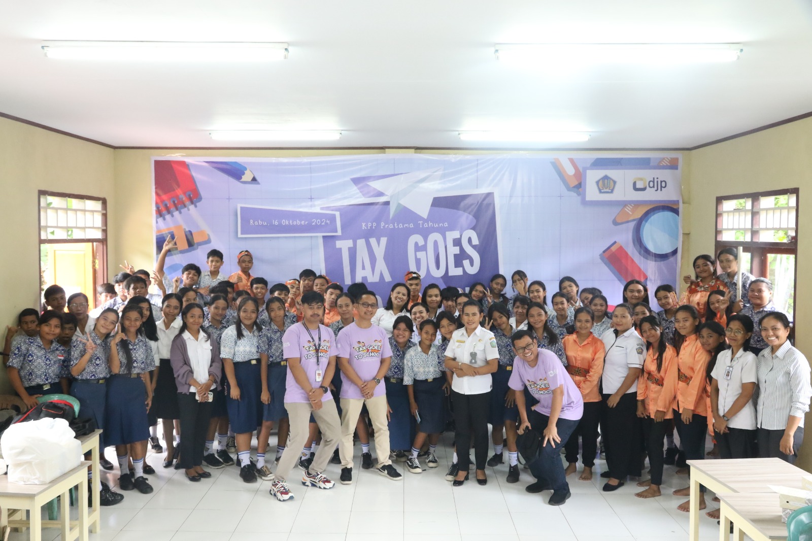 Kantor Pelayanan Pajak (KPP) Pratama Tahuna mengadakan edukasi perpajakan sejak dini di SMP Negeri 3 Tahuna, Sulawesi Utara. Kegiatan tersebut dilaksanakan secara langsung di Ruang Aula SMPN 3 Tahuna (Rabu, 16/10). Program edukasi ini dikemas dalam sebuah acara bertajuk Tax Goes to School (TGTS).