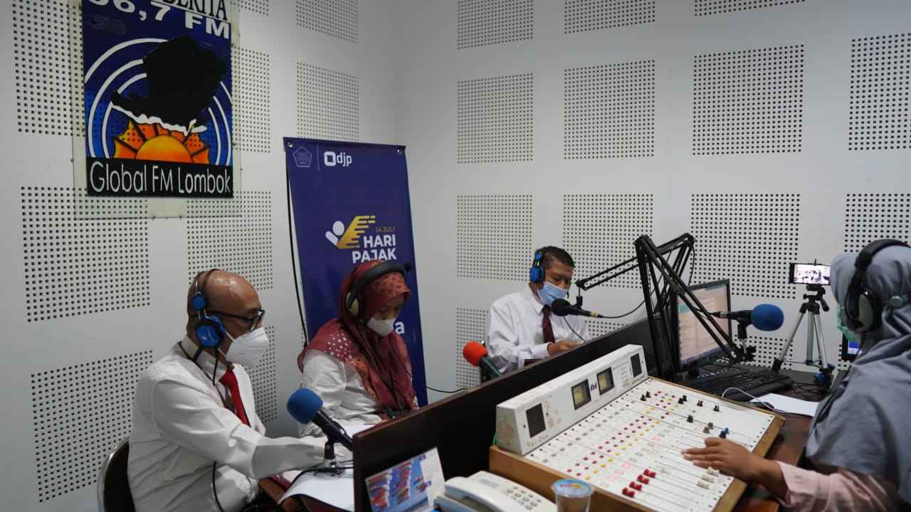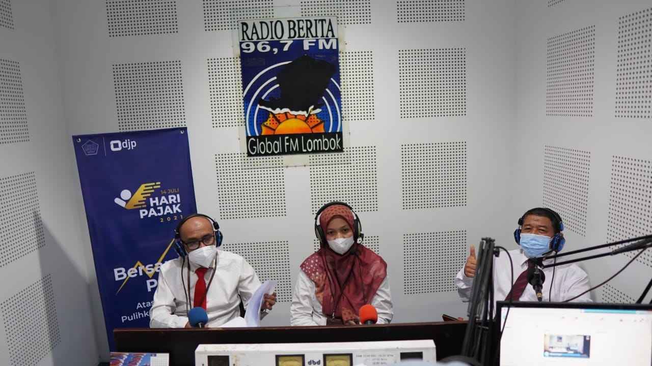 Kanwil DJP Nusa Tenggara menyelenggarakan gelar wicara perpajakan di radio dengan tajuk 'Bersama Pajak, Atasi Pandemi, Pulihkan Ekonomi' (Senin, 14/7). Kegiatan yang diadakan untuk memperingati Hari Pajak tahun 2021 ini dilangsungkan di kantor radio Global FM Lombok, Kota Mataram.