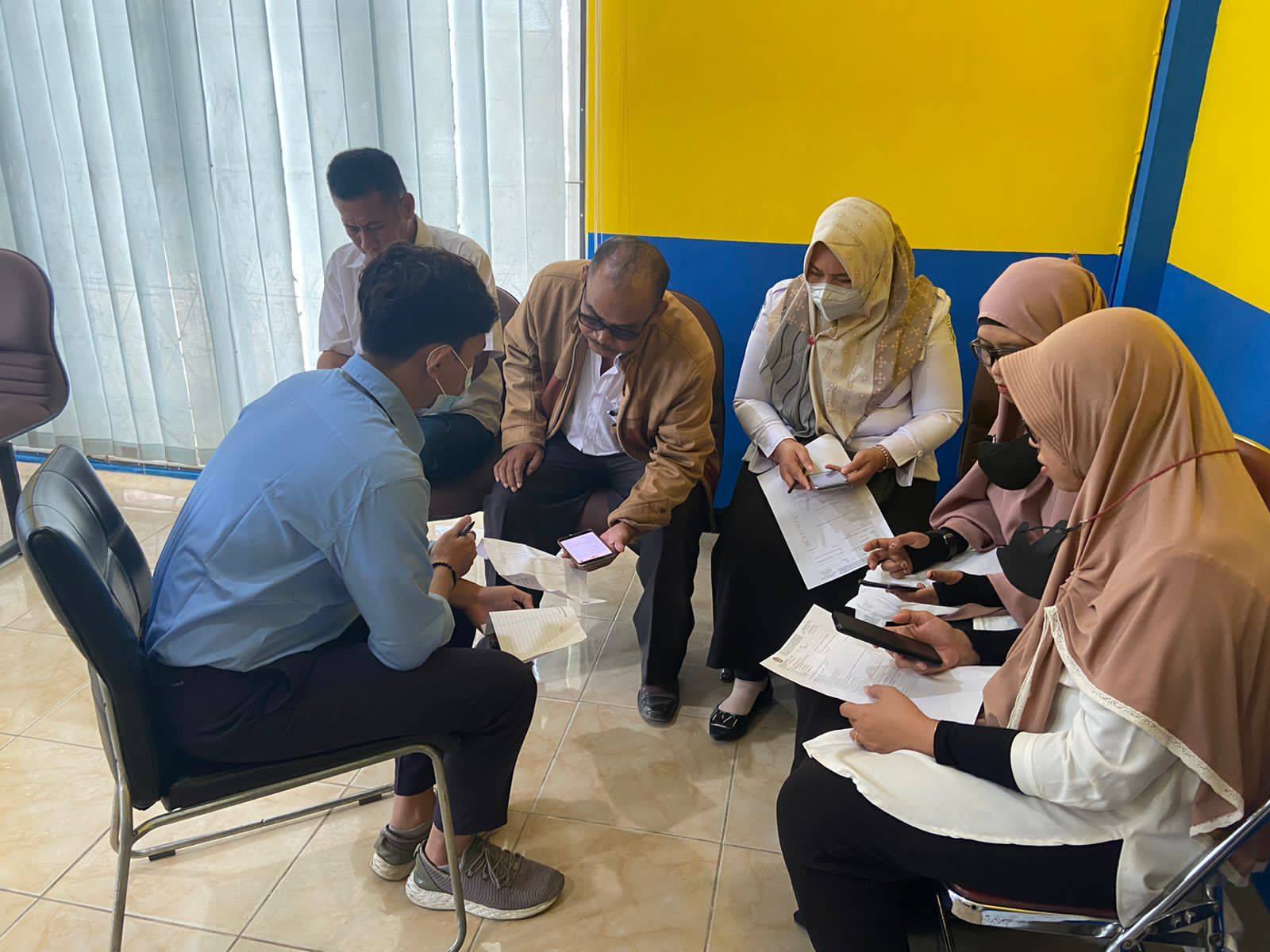 Heru memberikan penjelasan mengenai SPT Tahunan dan bagaimana cara menggunakan e-Filing kepada lima wajib pajak yang berstatus pegawai tetap dari Puskesmas Tangaran. Heru dengan sabar menjelaskan langkah-langkah pengisian SPT Tahunan melalui e-Filing dari awal hingga mendapatkan Bukti Penerimaan Elektronik (BPE).
