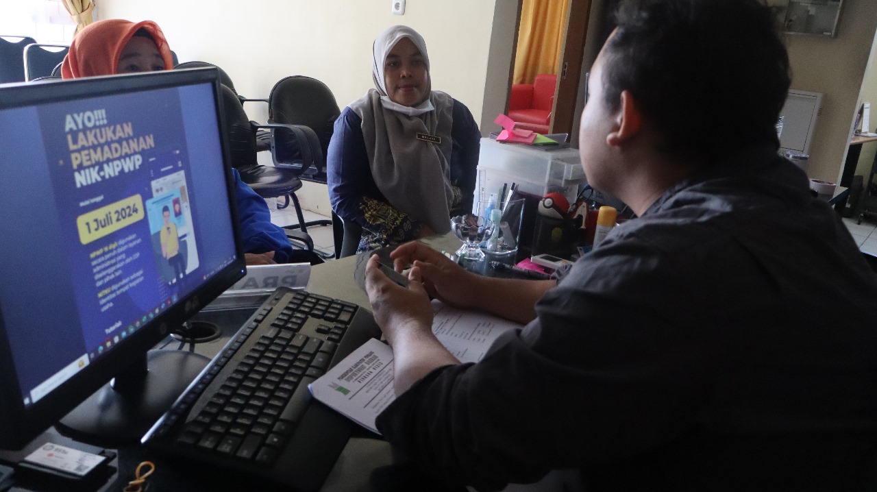 Beberapa wajib pajak pun datang ke KP2KP Pinrang setelah menerima pesan himbauan yang disampaikan melalui Whatsapp. Dodik, Pelaksana KP2KP Pinrang, menyambut wajib pajak dengan ramah. Ia menjelaskan bahwa dengan adanya pemadanan ini dapat memudahkan integrasi data perpajakan dengan data pihak ketiga lainnya. “Pemadanan NIK-NPWP sebenarnya dapat dilakukan secara mandiri oleh wajib pajak melalui laman pajak.go.id,” ucap Dodik sambil memadankan NIK-NPWP wajib pajak.