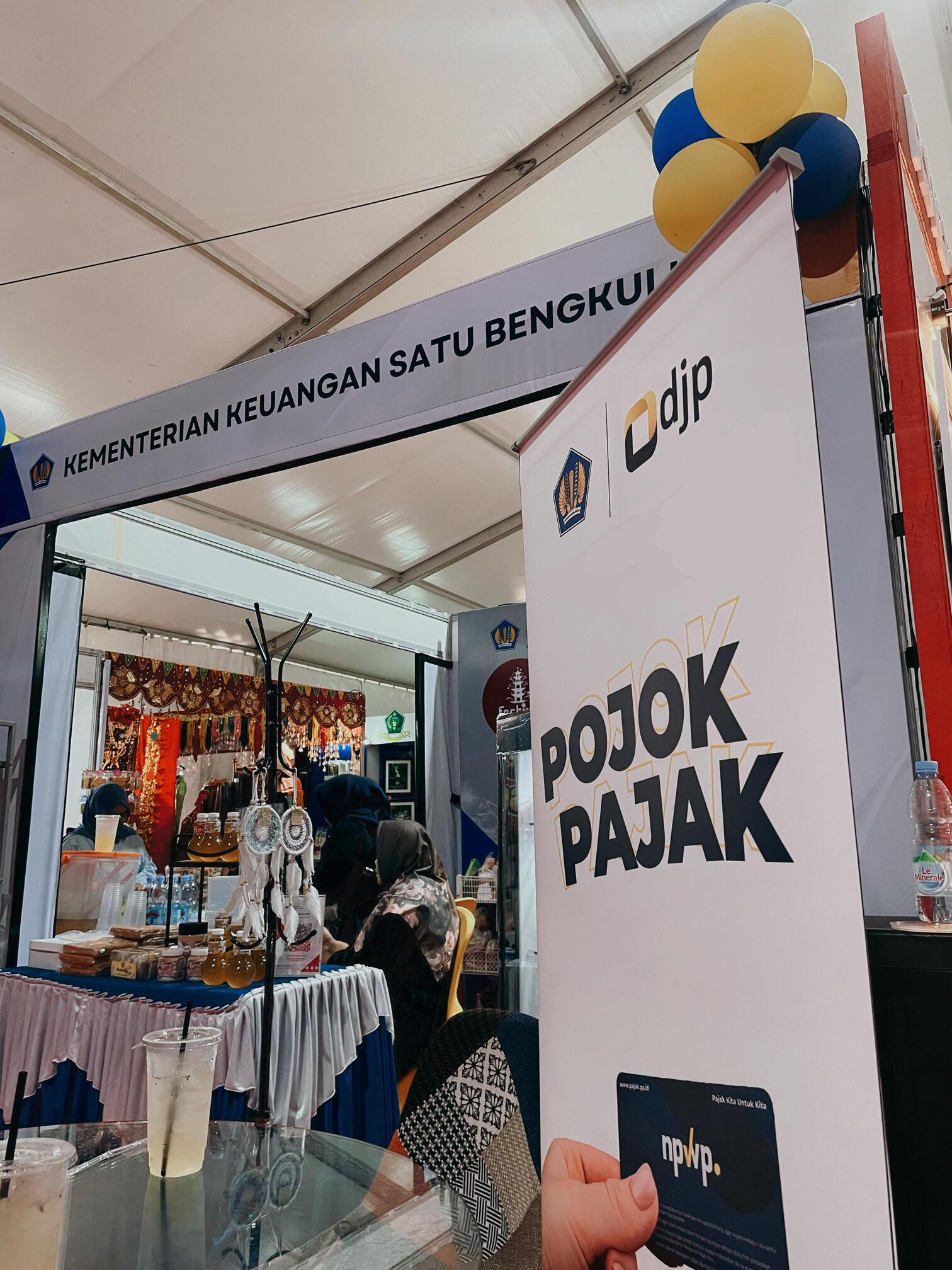 Kantor Pelayanan Pajak (KPP) Pratama Bengkulu Satu membuka Pojok Pajak di Booth Pemberdayaan UMKM Kementerian Keuangan Satu Bengkulu pada Festival Tabut di Sport Center, Jalan Pariwisata, Kecamatan Ratu Samban, Kota Bengkulu (Senin, 30/6).