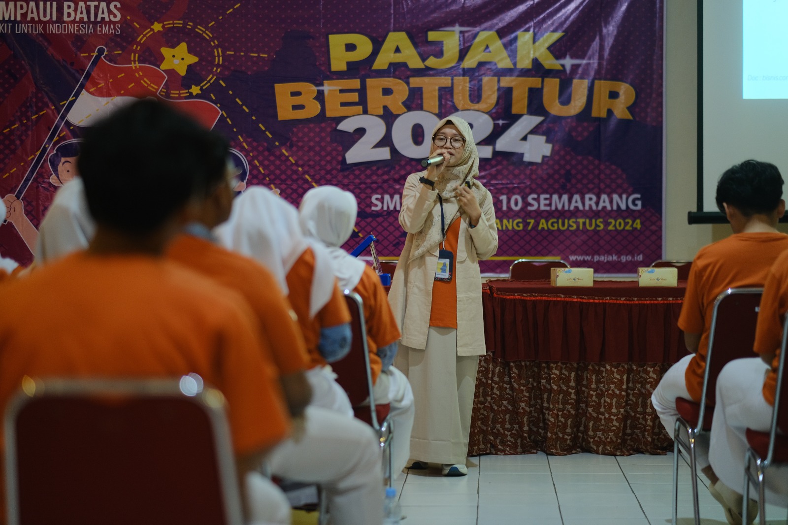 “Sehari Mengenal, Selamanya Bangga!”. Tagline Pajak Bertutur tersebut menggema memenuhi Ruang Multimedia Sekolah Menengah Atas (SMA) Negeri 10 Semarang (Rabu, 7/8). Kantor Pelayanan Pajak (KPP) Pratama Semarang Gayamsari menyelenggarakan kegiatan Pajak Bertutur 2024 yang rutin dilakukan tiap setahun sekali oleh Direktorat Jenderal Pajak. Kegiatan tersebut dilakukan secara serentak di seluruh wilayah Indonesia.