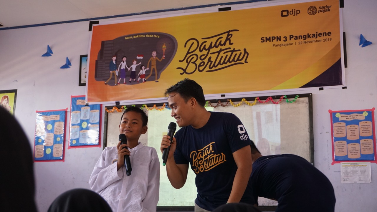 Kegiatan Pajak Bertutur ini dibuka dengan sambutan dari Kepala KP2KP Pangkajene Baharuddin. Dengan dipandu oleh Fadel Muhammad dan Maria Agustin, para siswa sangat antusias mengikuti jalannya pajak bertutur sampai selesai.