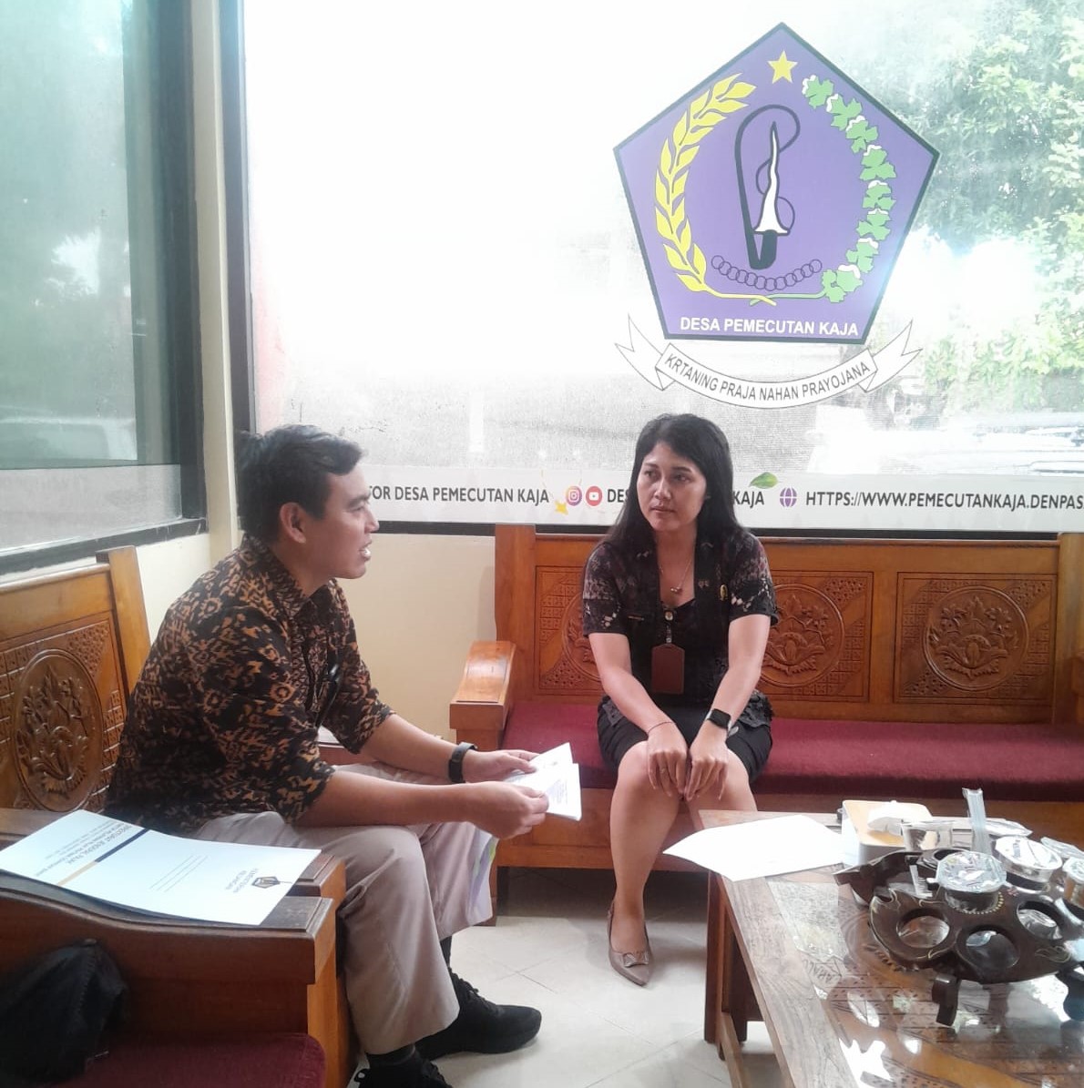 Account Representative (AR) Seksi Pegawasan VI Kantor Pelayanan Pajak (KPP) Pratama Denpasar Barat Dyno Yuniarta dan Emanuel Suhardy Kadim melakukan kunjungan kerja ke Kantor Desa Pemecutan Kaja di Kota Denpasar (Selasa, 10/12).