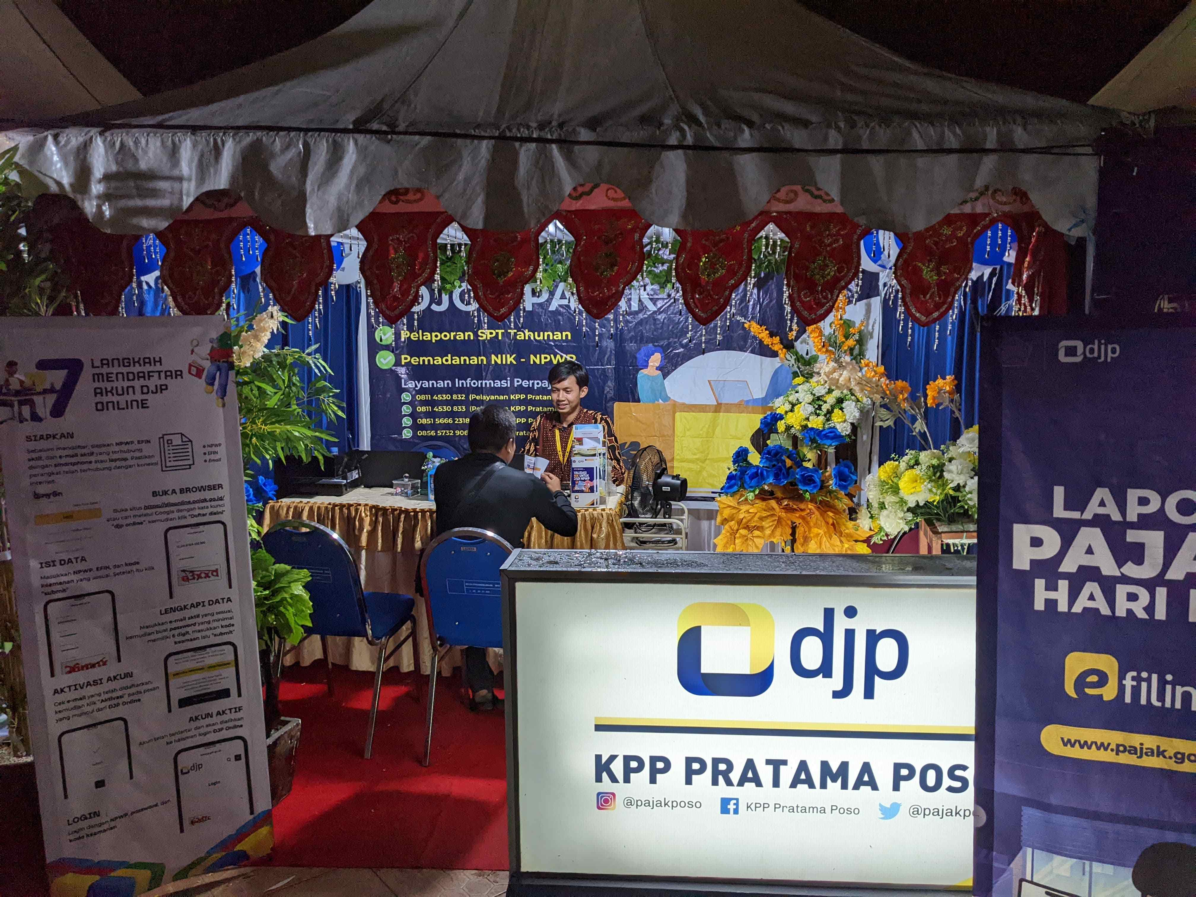 Kantor Pelayanan, Penyuluhan dan Konsultasi Perpajakan (KP2KP) Bungku memeriahkan HUT Ke-129 Kabupaten Poso dengan membuka Pojok Pajak di Alun-Alun Sintuwu Maroso, Kabupaten Poso, Sulawesi Tengah (Jumat, 1/3). Pojok Pajak tersebut akan dibuka selama tiga hari, yakni hari Jumat s.d. Minggu, tanggal 1-3 Maret 2024, pukul 08.00 – 21.00 WITA.