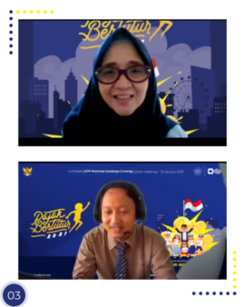 Pajak Bertutur 2021 kali ini diaksanakan secara daring melalui aplikasi Zoom Meeting. Acara dimulai dengan pembukaan yang dilakukan oleh pembawa acara, sambutan oleh Kepala KPP Pratama Surabaya Gubeng dan Kepala SMP Muhammadiyah 5 Surabaya. Acara kemudaian dilanjutkan dengan pemaparan materi, permainan ,pengumuman pemenang lomba twibbon, dan terakhir penutup.