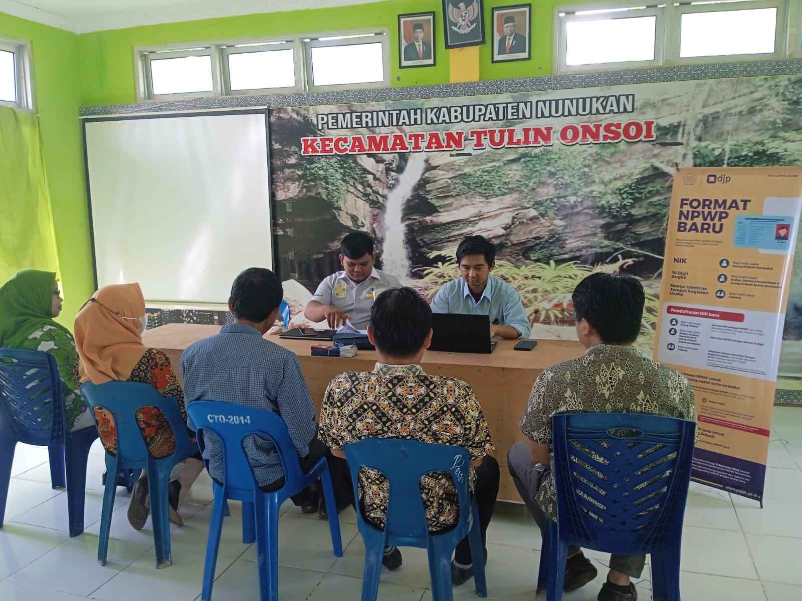 Kepala Kantor Pelayanan Penyuluhan dan Konsultasi Perpajakan (KP2KP) Nunukan Ari Saptono, bersama tim, giat mengadakan program edukasi jemput bola terkait integrasi Nomor Induk Kependudukan (NIK) dan Nomor Pokok Wajib Pajak (NPWP) di Kabupaten Nunukan (Senin, 19/12).