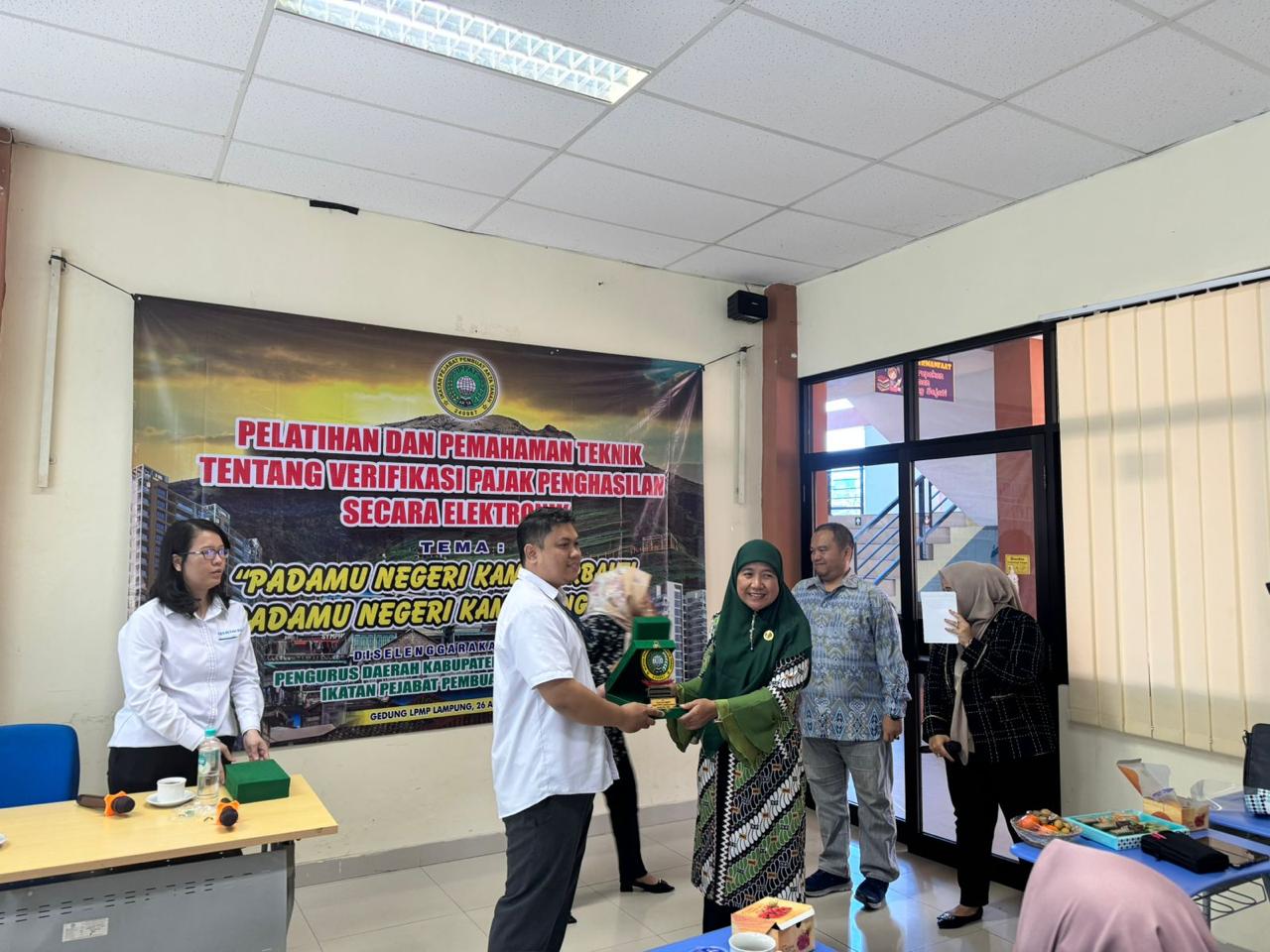 Kantor Pelayanan Pajak (KPP) Pratama Natar memenuhi undangan menjadi narasumber dalam acara Pelatihan dan Pemahaman Teknik tentang Verifikasi Pajak Penghasilan secara Elektronik yang digelar oleh Pengurus Daerah Kabupaten (Pengdakab) Lampung Selatan Ikatan Pejabat Pembuat Akta Tanah (IPPAT) di Gedung Lembaga Penjaminan Mutu Pendidikan (LPMP) Lampung, Jalan Jendral Gatot Subroto Nomor 44, Pahoman, Enggal, Bandar Lampung, Lampung (Senin, 26/8).