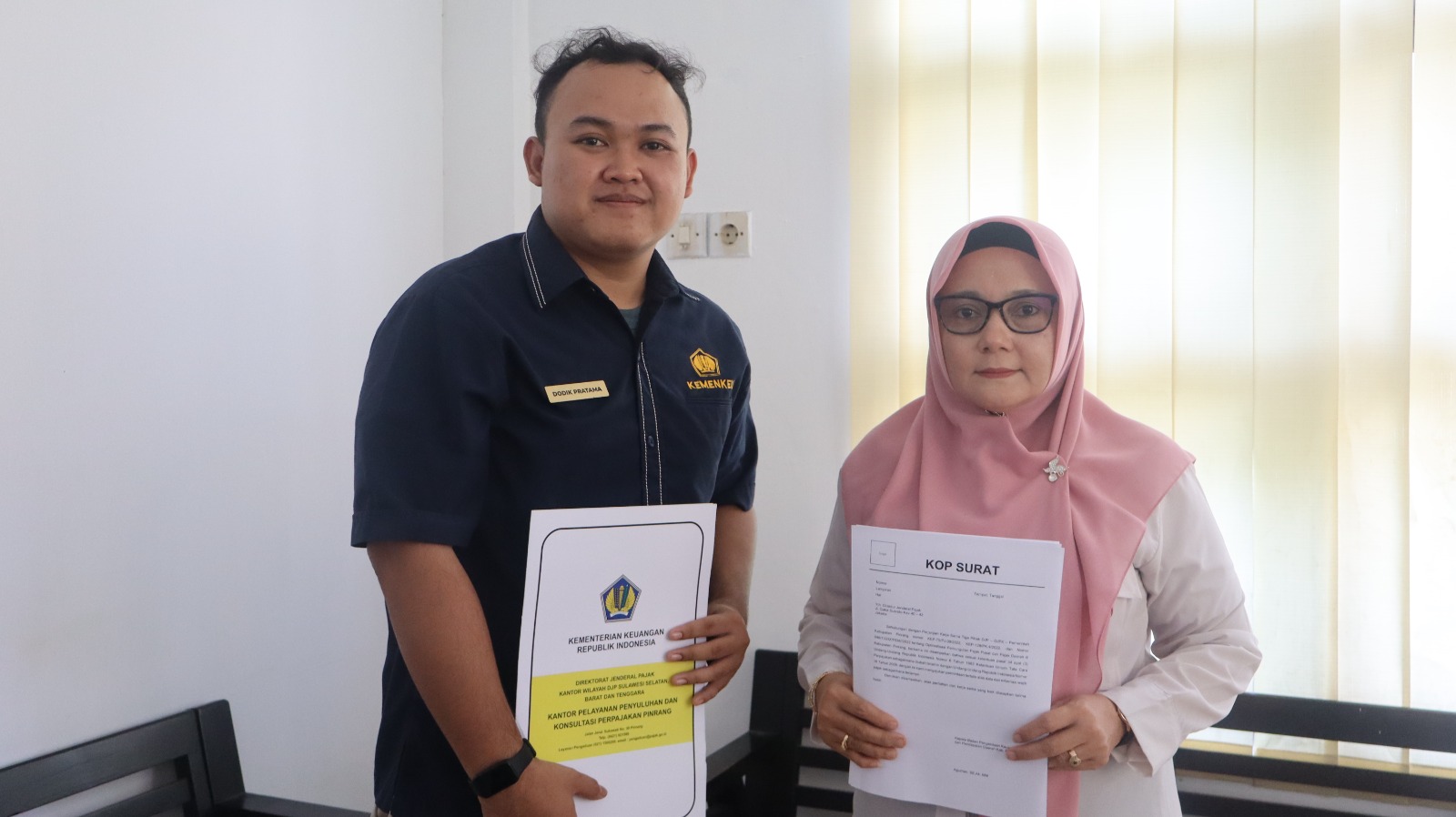 Pelaksana KP2KP Pinrang, Dodik, diterima secara langsung dengan hangat dan ramah oleh Naharia selaku Kepala Subbidang Pendataan Pajak BPKPD Pinrang. Dalam kunjungan ini, kedua belah pihak membahasa berbagai upaya yang akan diambil untuk meningkatkan kepatuhan wajib pajak di Kabupaten Pinrang.