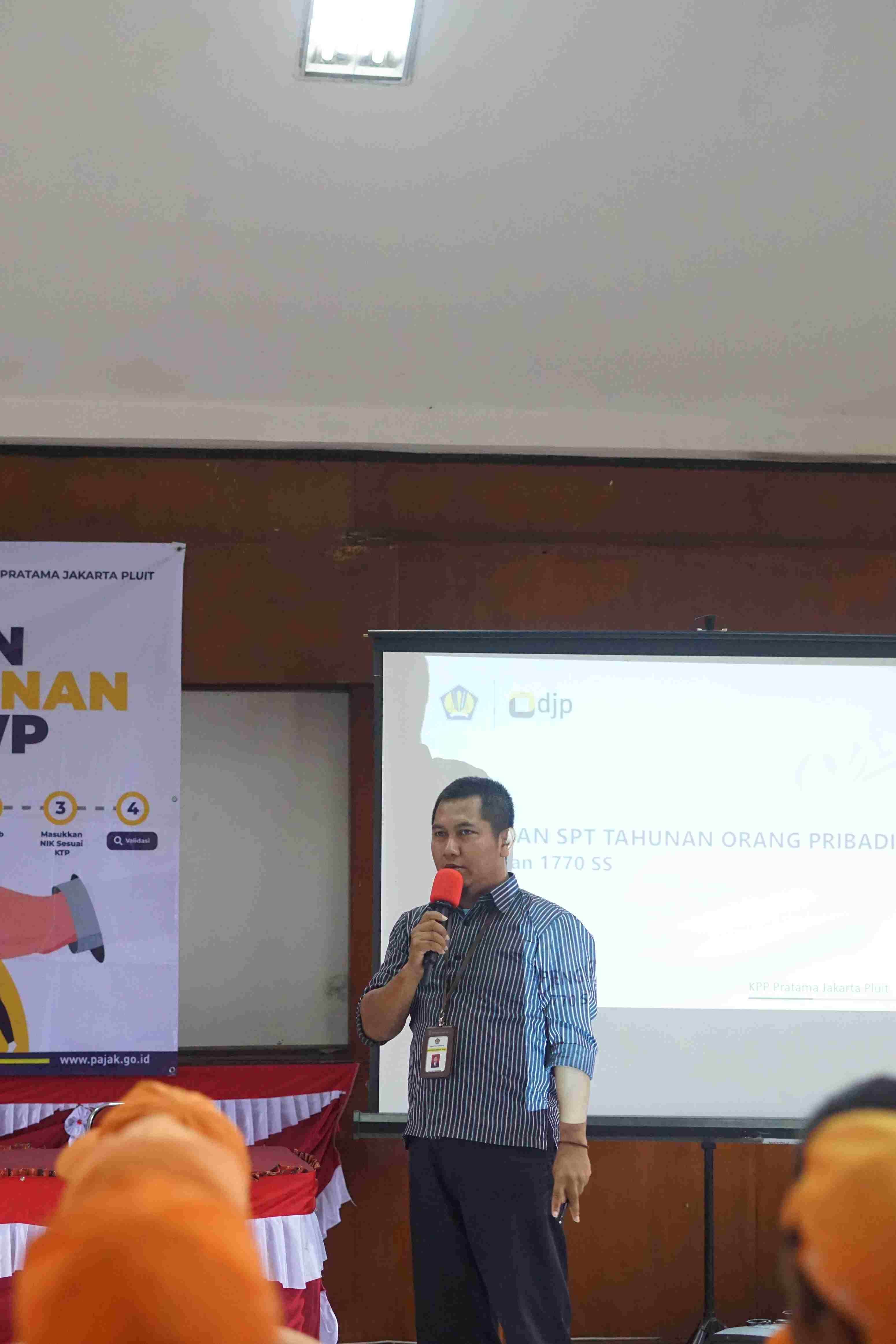 Setelah sambutan, dilanjutkan pemaparan materi disampaikan Tim Penyuluh Pajak Pluit Fauzi Korniawan mengenai tata cara pelaporan SPT Tahunan dan validasi NIK-NPWP serta sesi tanya jawab. Selanjutnya dibuka layanan pojok pajak mulai pukul 10.00 sampai 15.00 WIB, diikuti 60 wajib pajak.