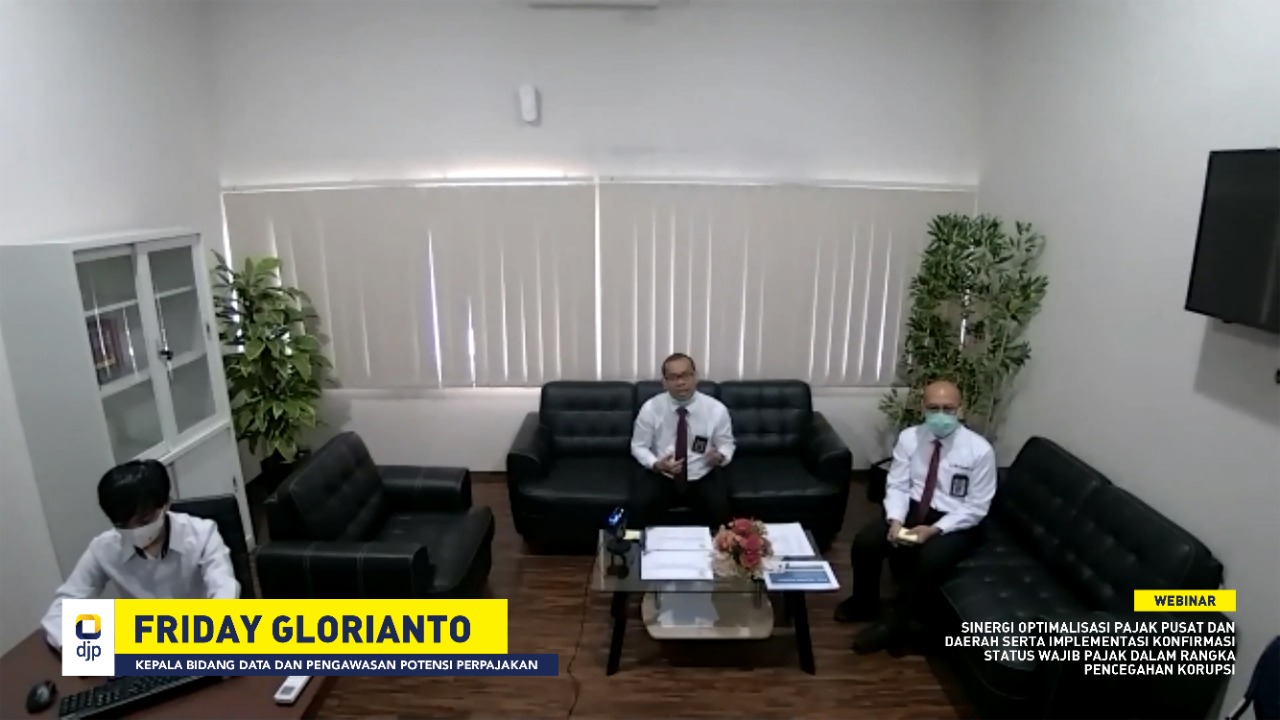 Narasumber dalam koordinasi ini adalah Kepala Bidang Data dan Potensi Perpajakan Friday Glorianto dan Kepala Satuan Tugas Koordinator Wilayah Pencegahan 3 KPK yang diwakili Fungsional Koordinasi dan Supervisi Dwi Aprillia Linda dengan Kepala Seksi Dukungan Teknis dan Komputer Mas Eko Affandi selaku moderator.